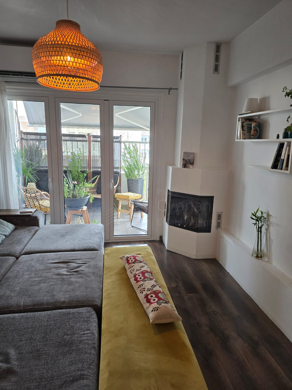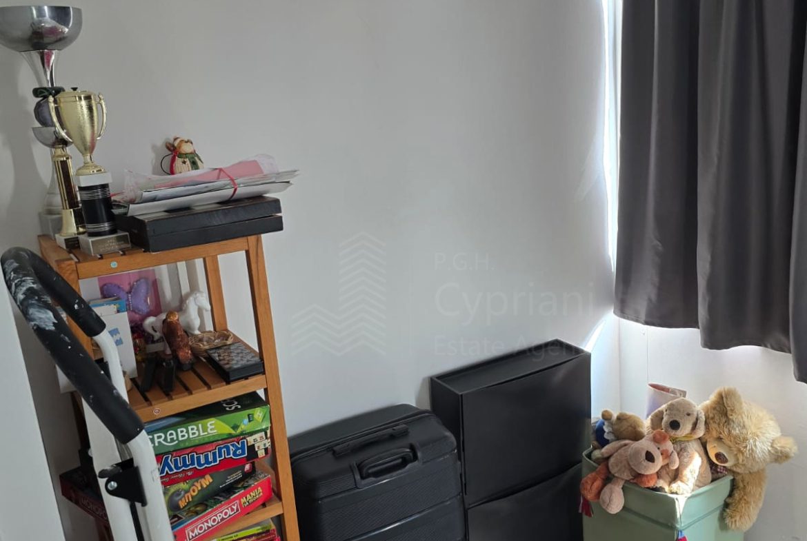 A three-bedroom apartment for sale in Agios Antonios, in a great location. The apartment has an area of 102 sqm + 24 sqm verandas and it is set on the 4th floor. It features two bathrooms, a storage room and a covered parking space. Other features of the property include appliances, air conditioning and a solar water heater. The apartment was constructed in 1997 and it has a title deed.