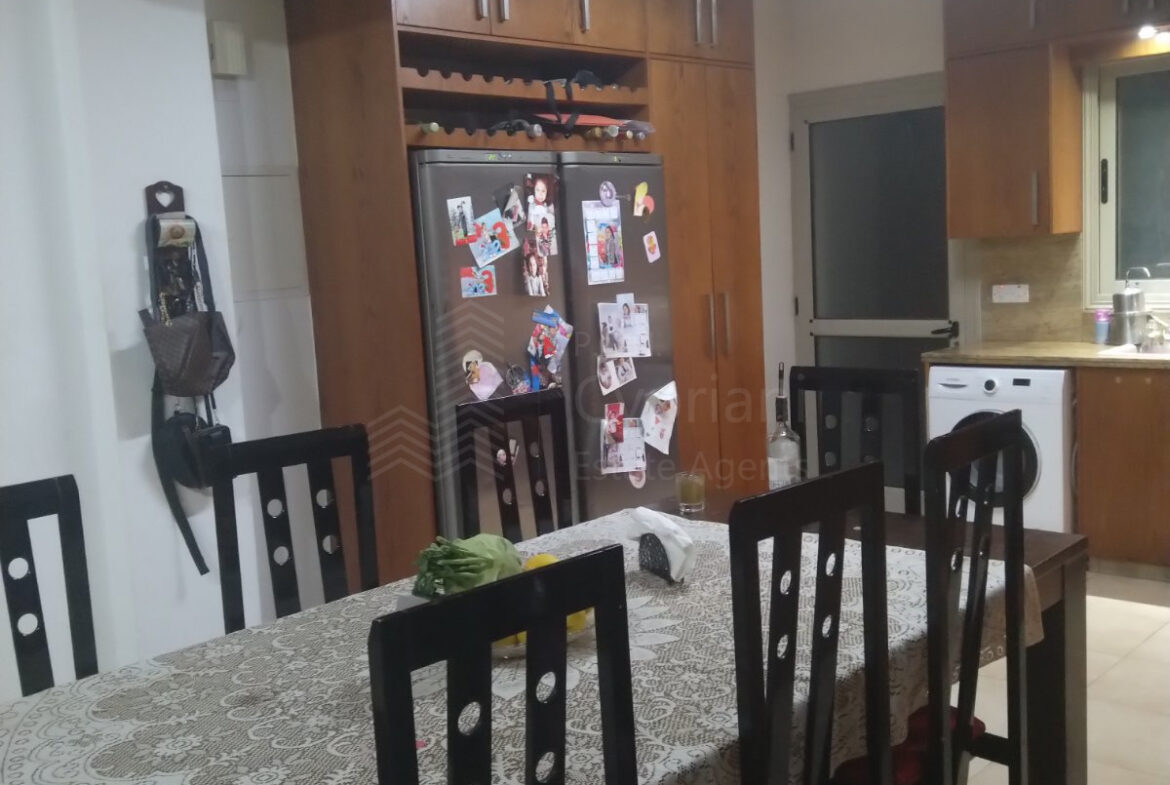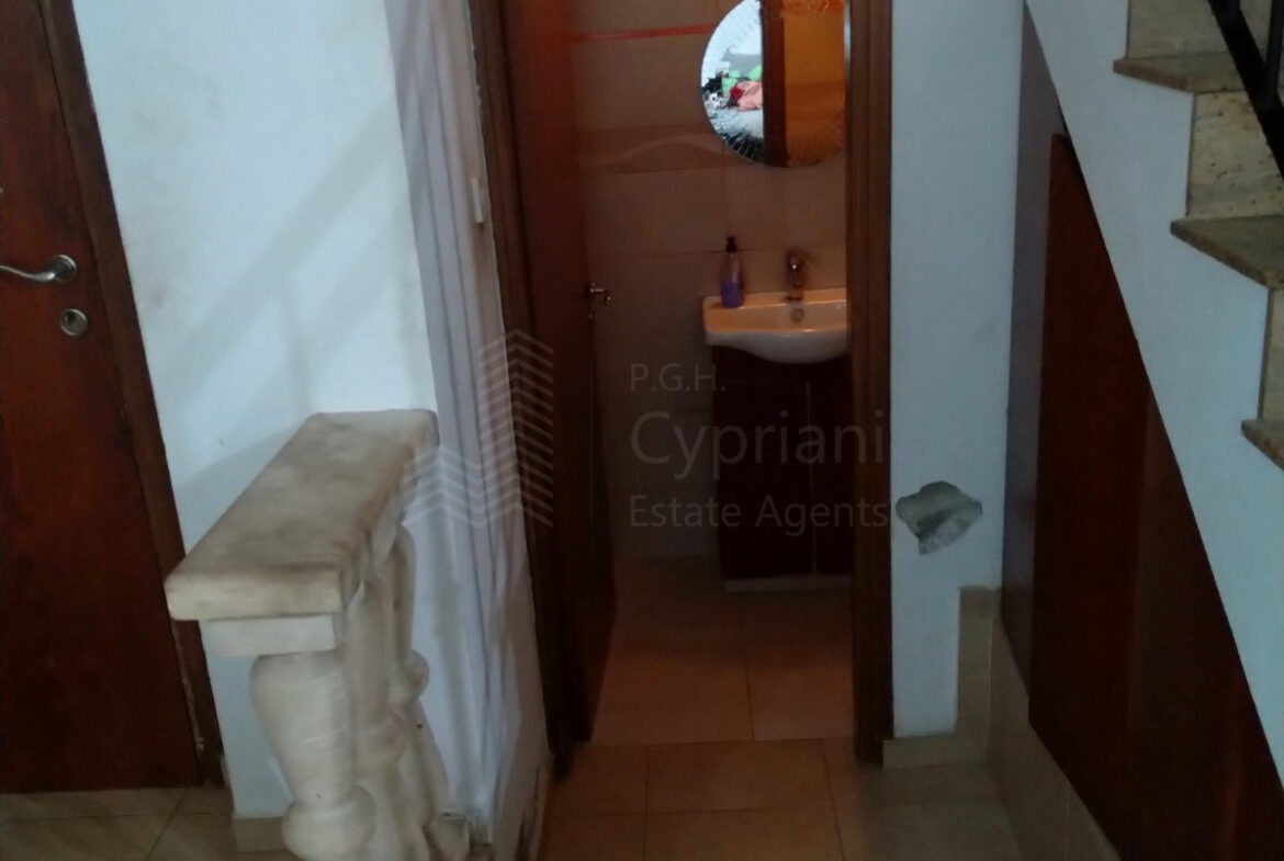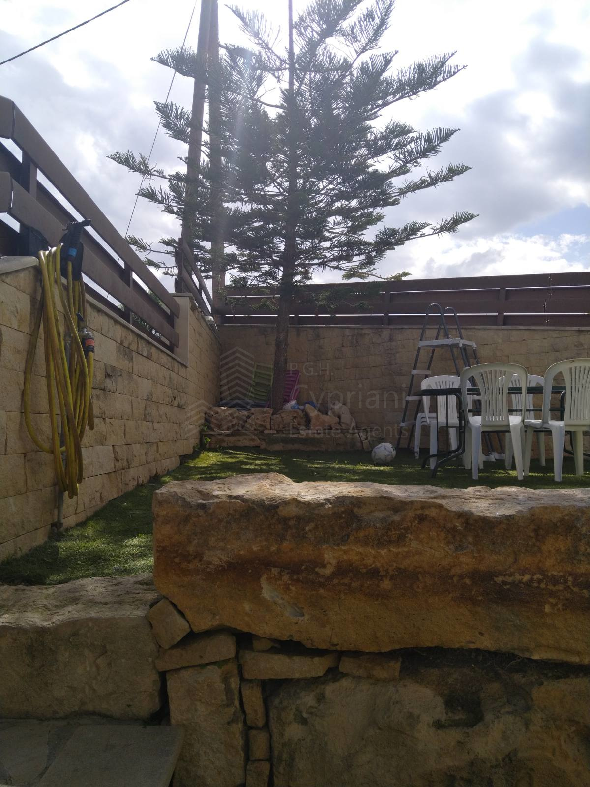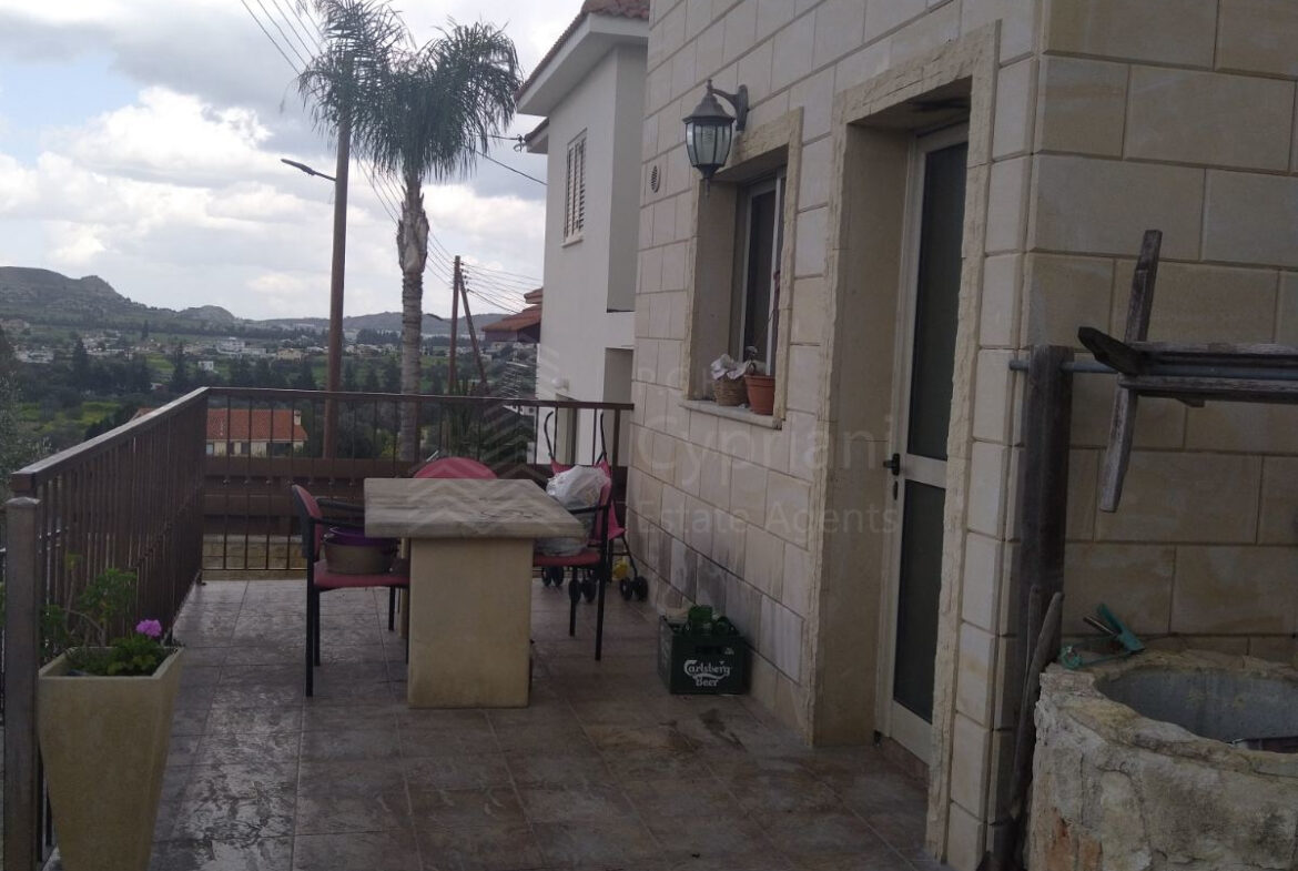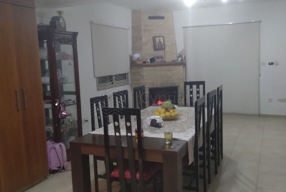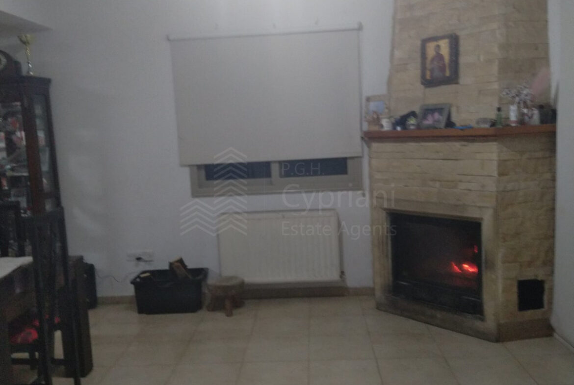 A furnished three-bedroom house for sale in Alampra. The house has an area of 160 sqm and it is built within a land plot of 253 sqm. It features a guest toilet, two bathrooms, a storage room and a covered parking space. Other features of the property include electrical appliances, air conditioning (partly), a solar water heater and a fireplace. The property was constructed in 2006 and it has a title deed.