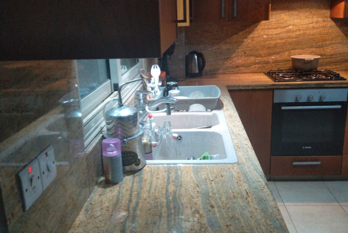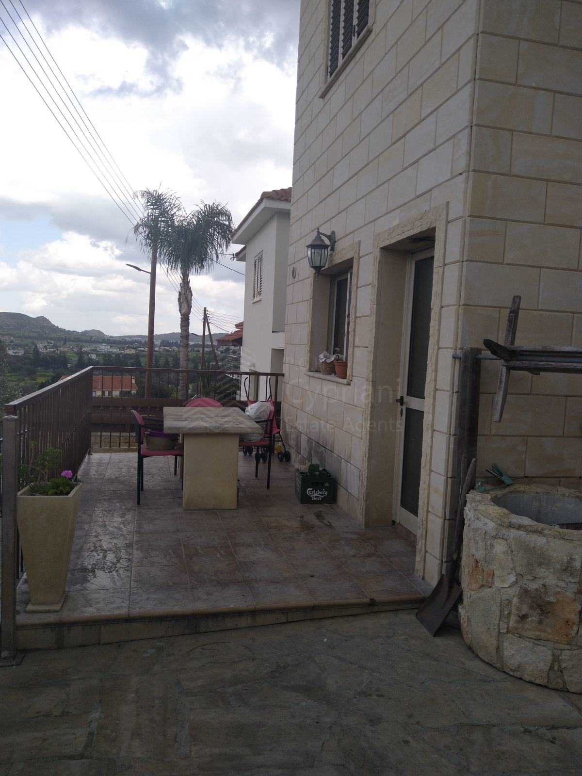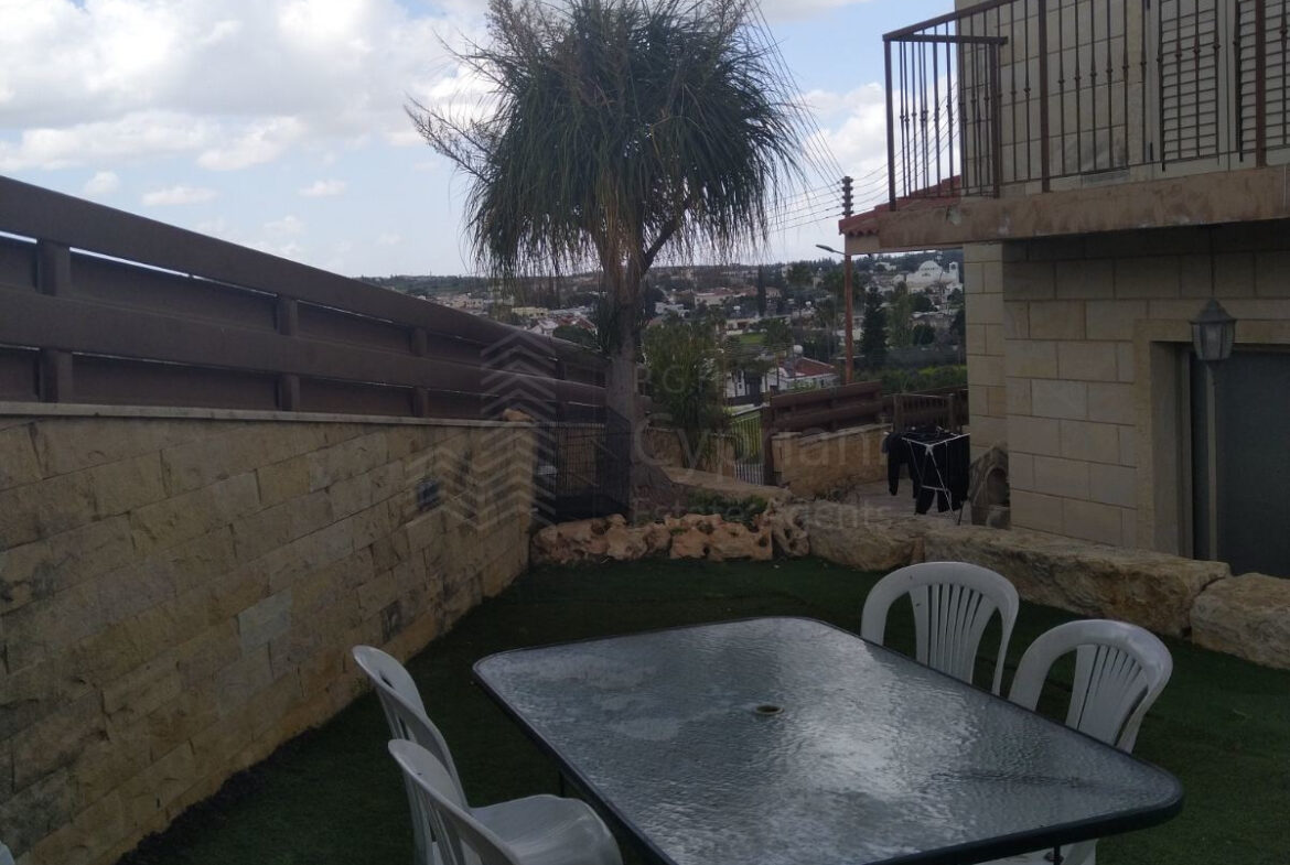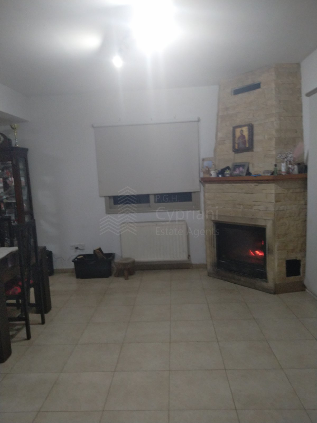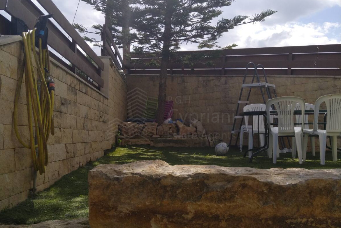 A furnished three-bedroom house for sale in Alampra. The house has an area of 160 sqm and it is built within a land plot of 253 sqm. It features a guest toilet, two bathrooms, a storage room and a covered parking space. Other features of the property include electrical appliances, air conditioning (partly), a solar water heater and a fireplace. The property was constructed in 2006 and it has a title deed.