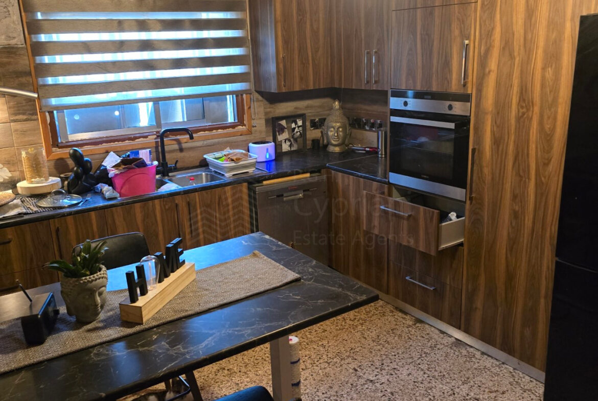 A three-bedroom house for sale in Ilioupoli, in Nicosia. The house has an area of 150 sqm and it is built within a land plot of 540 sqm. It features a covered parking space, appliances, a renovated kitchen, air conditioning (partly) and a solar water heater. The property was constructed in 1980 and there is an extra 140 sqm structure on the first floor.