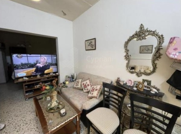 A furnished ground-floor house for sale in Lakatameia. The house has an area of 105 sqm and it features three bedrooms, an extra guest room and a covered parking space. Other features of the property include appliances, air conditioning (partially) and a solar water heater. The property was constructed in 1965 and it has a title deed.