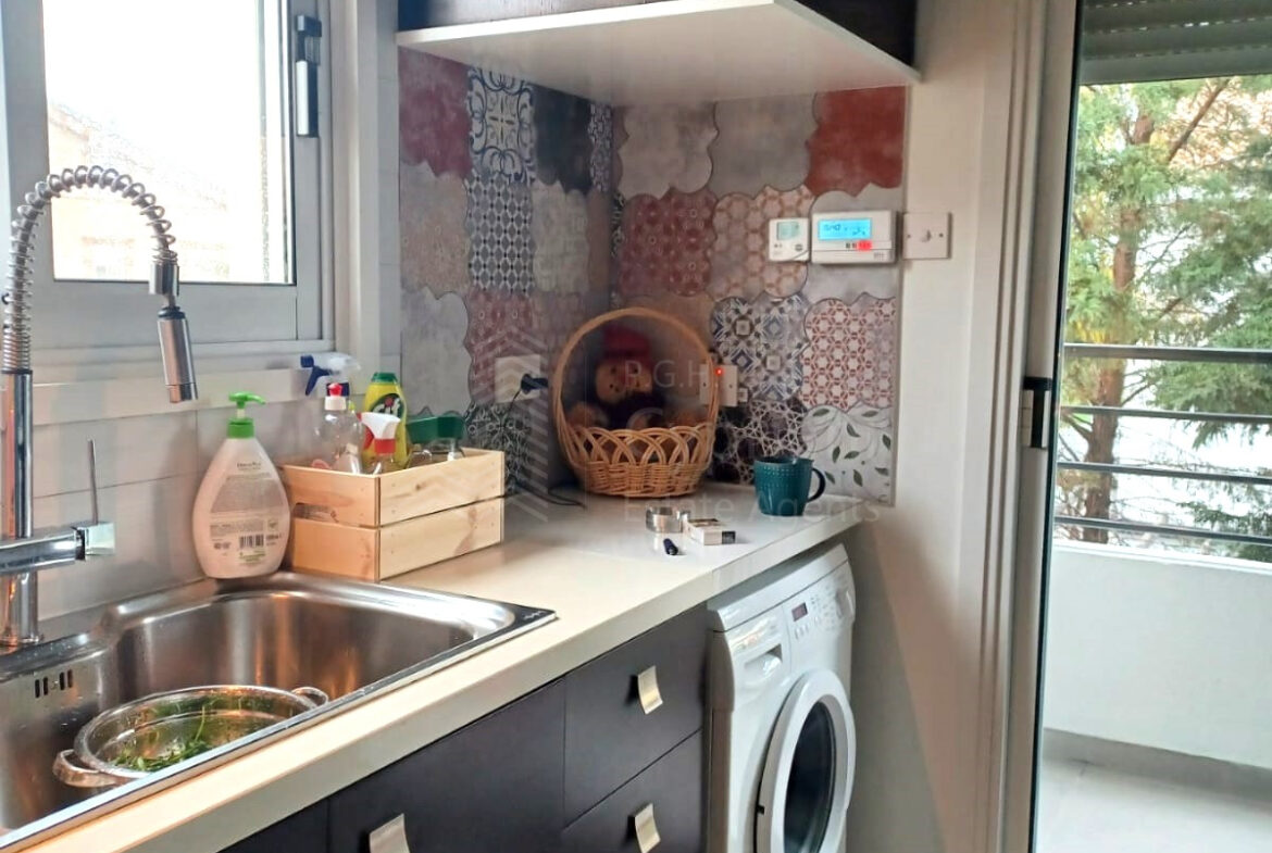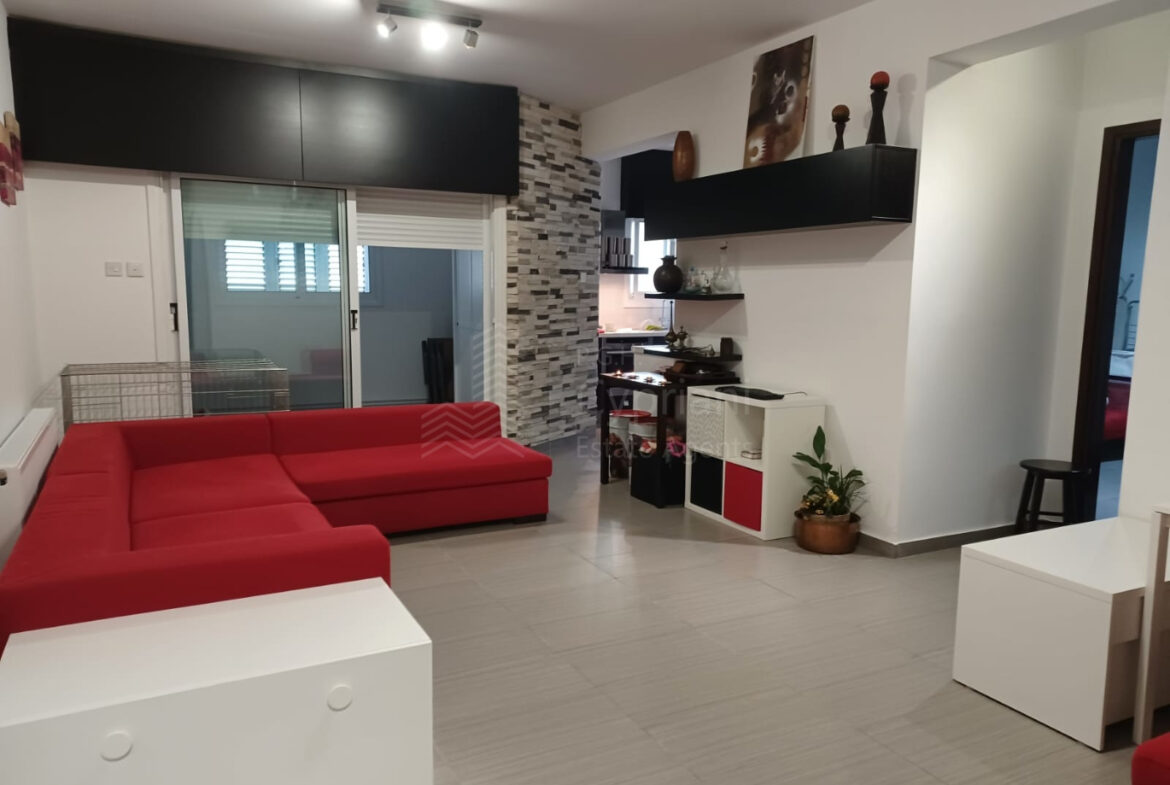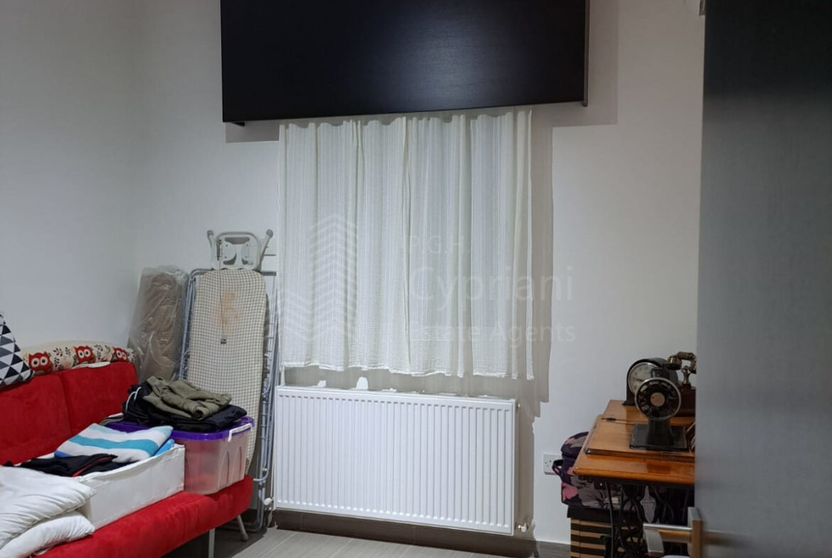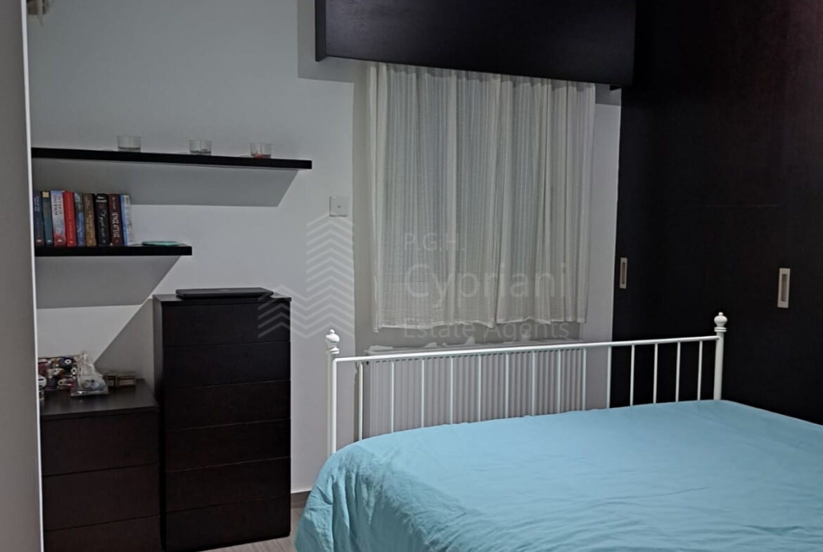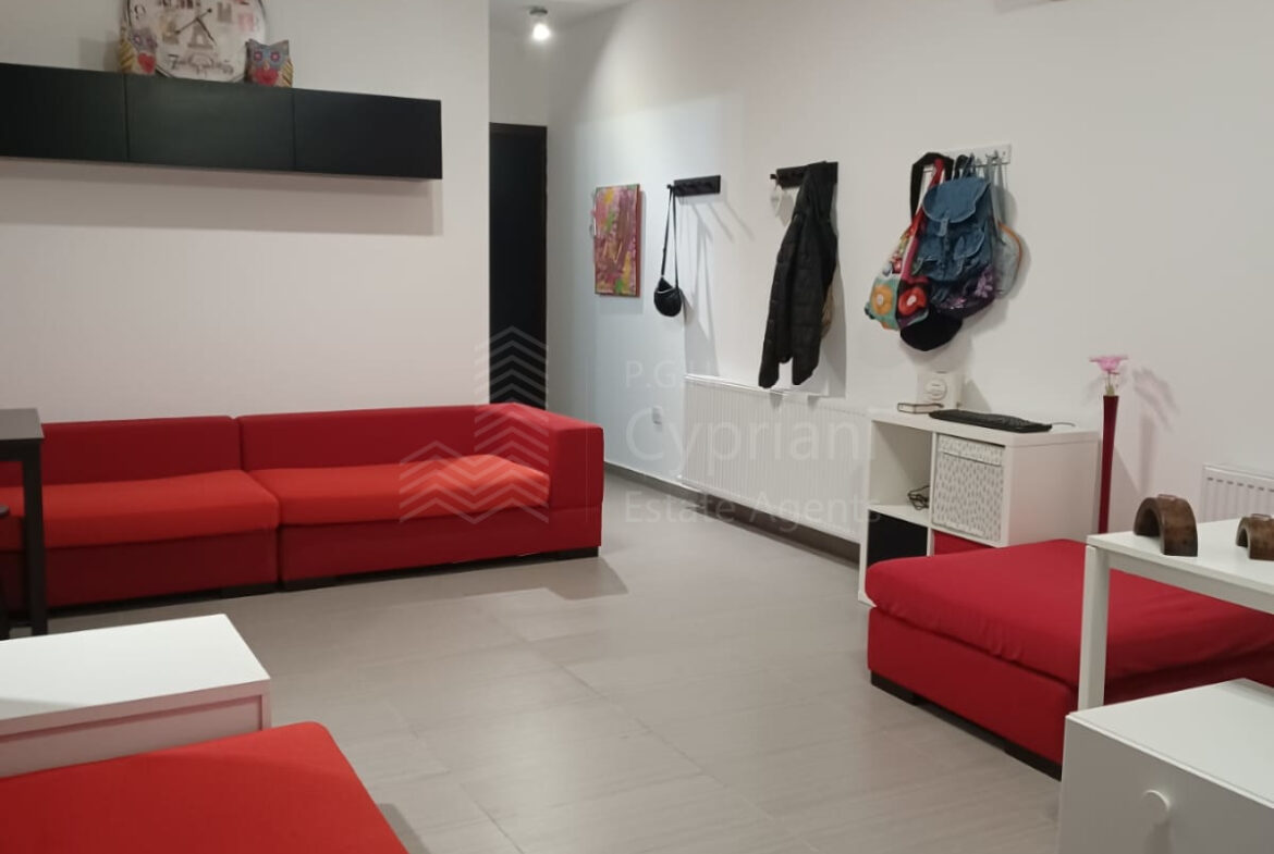 A two-bedroom apartment for sale in Lakatameia, in a cul-de-sac. The apartment has an area of 76 sqm + 14 sqm verandas and it is set on the 1st floor. It features an office, a guest wc, a bathroom, a storage room and a covered parking space. Other features of the property include appliances, air conditioning, gas central heating, a solar water heater, electric shutters and window screens. The property was constructed in 2010, it was renovated in 2022 and it has a title deed.