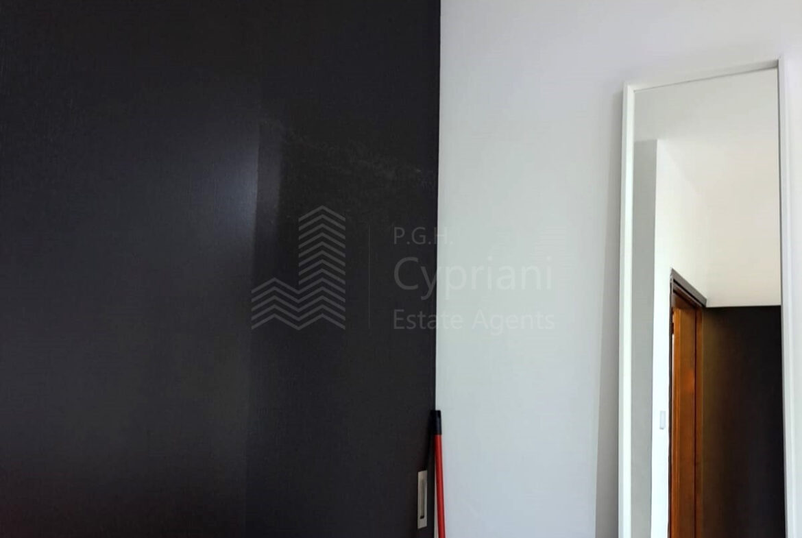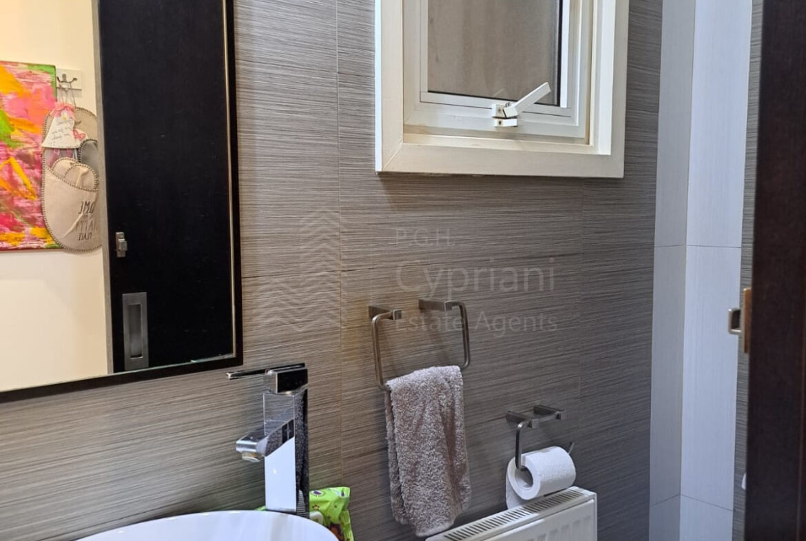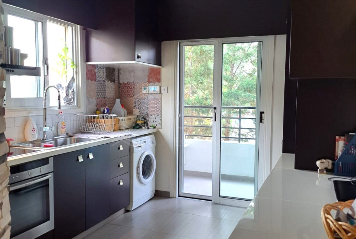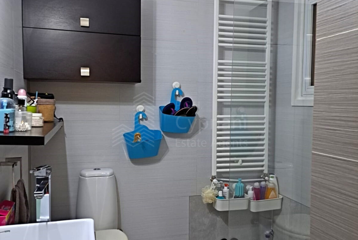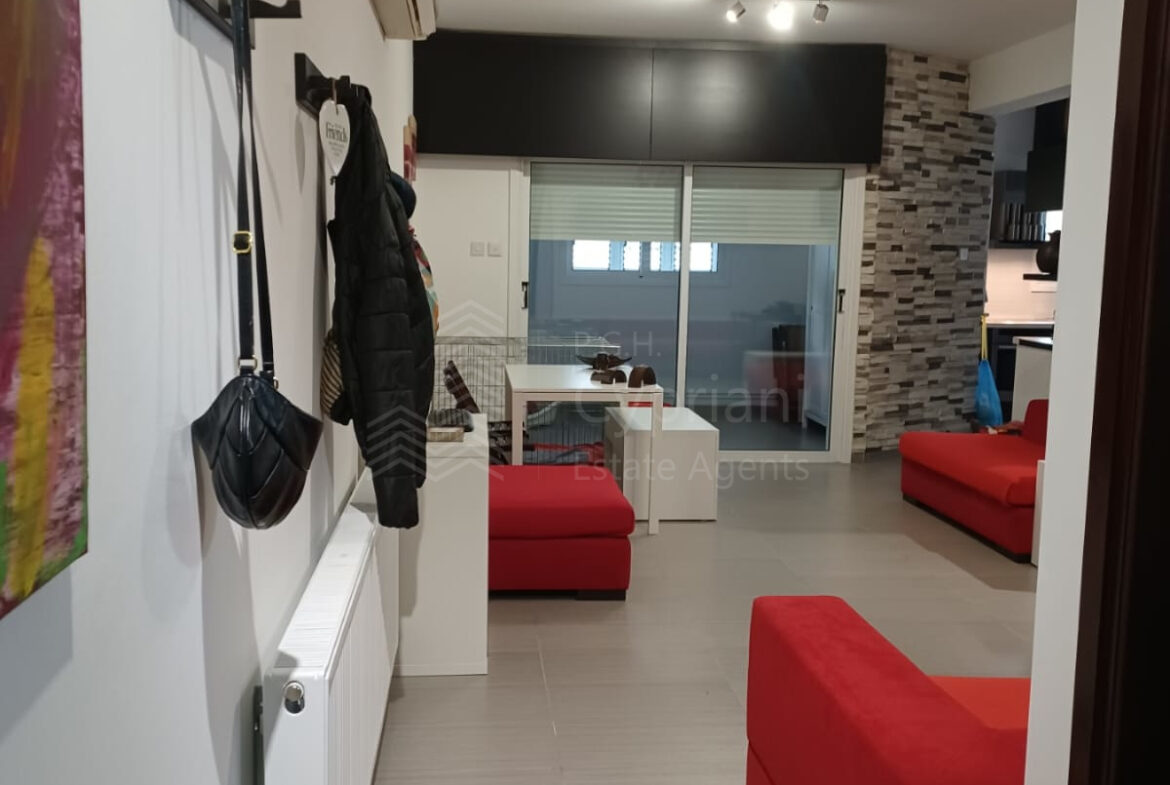 A two-bedroom apartment for sale in Lakatameia, in a cul-de-sac. The apartment has an area of 76 sqm + 14 sqm verandas and it is set on the 1st floor. It features an office, a guest wc, a bathroom, a storage room and a covered parking space. Other features of the property include appliances, air conditioning, gas central heating, a solar water heater, electric shutters and window screens. The property was constructed in 2010, it was renovated in 2022 and it has a title deed.