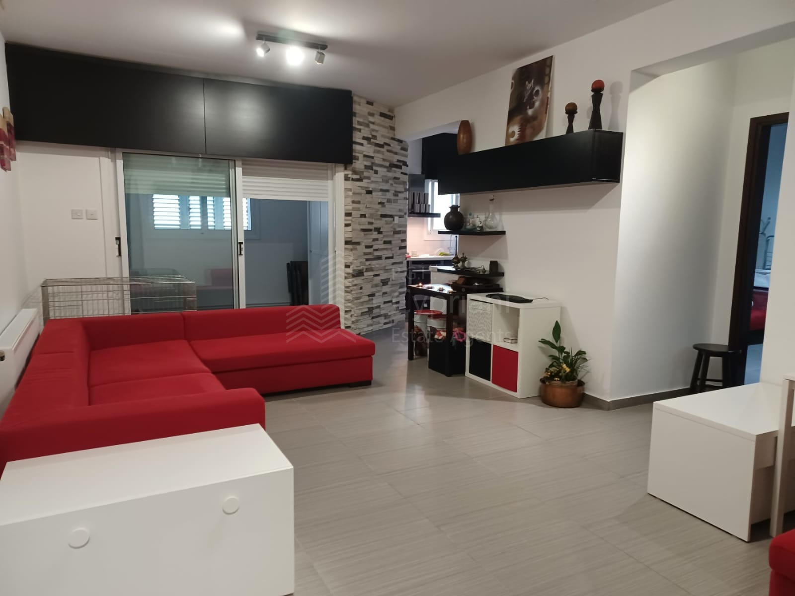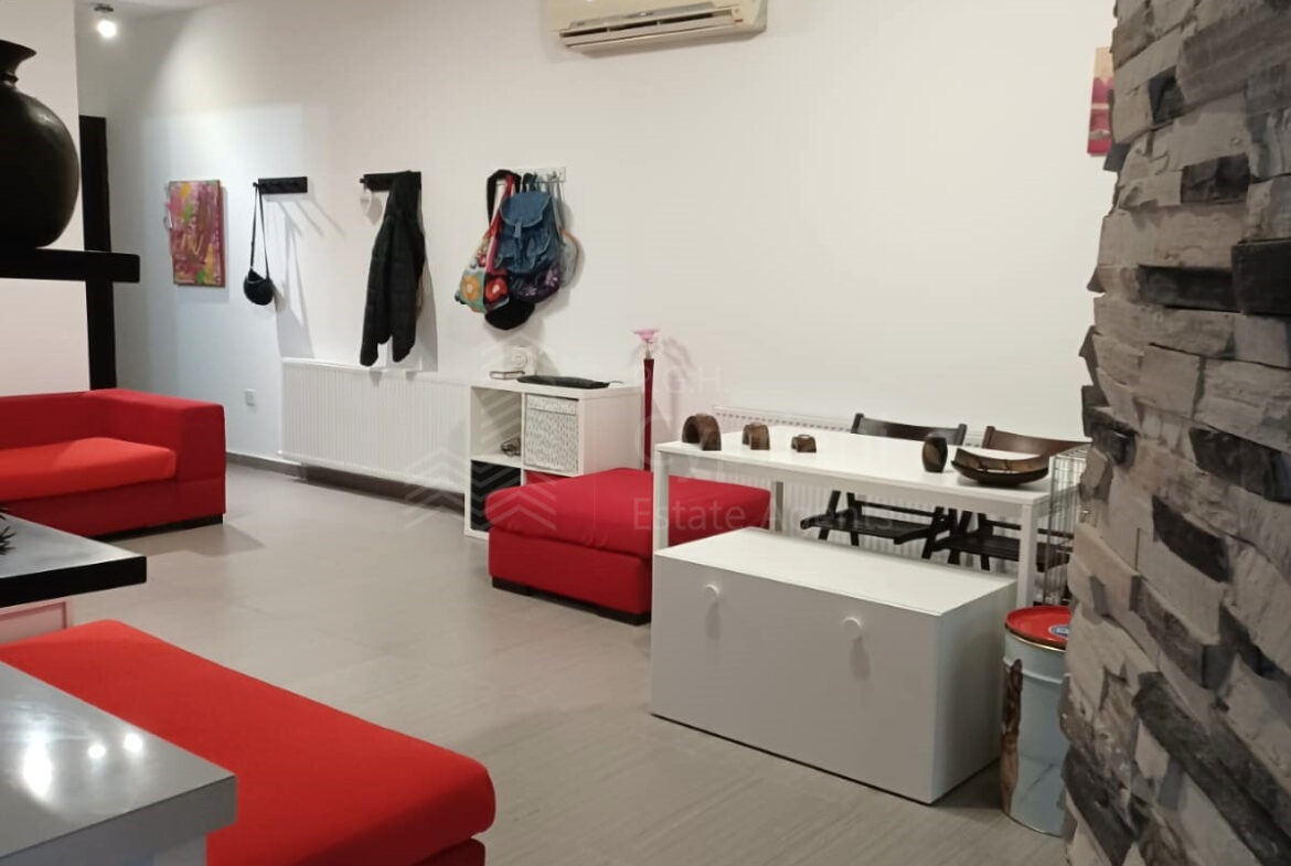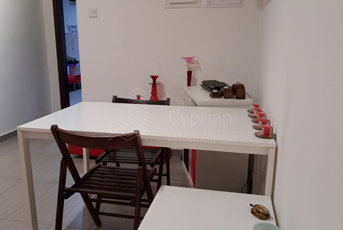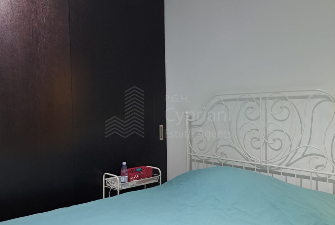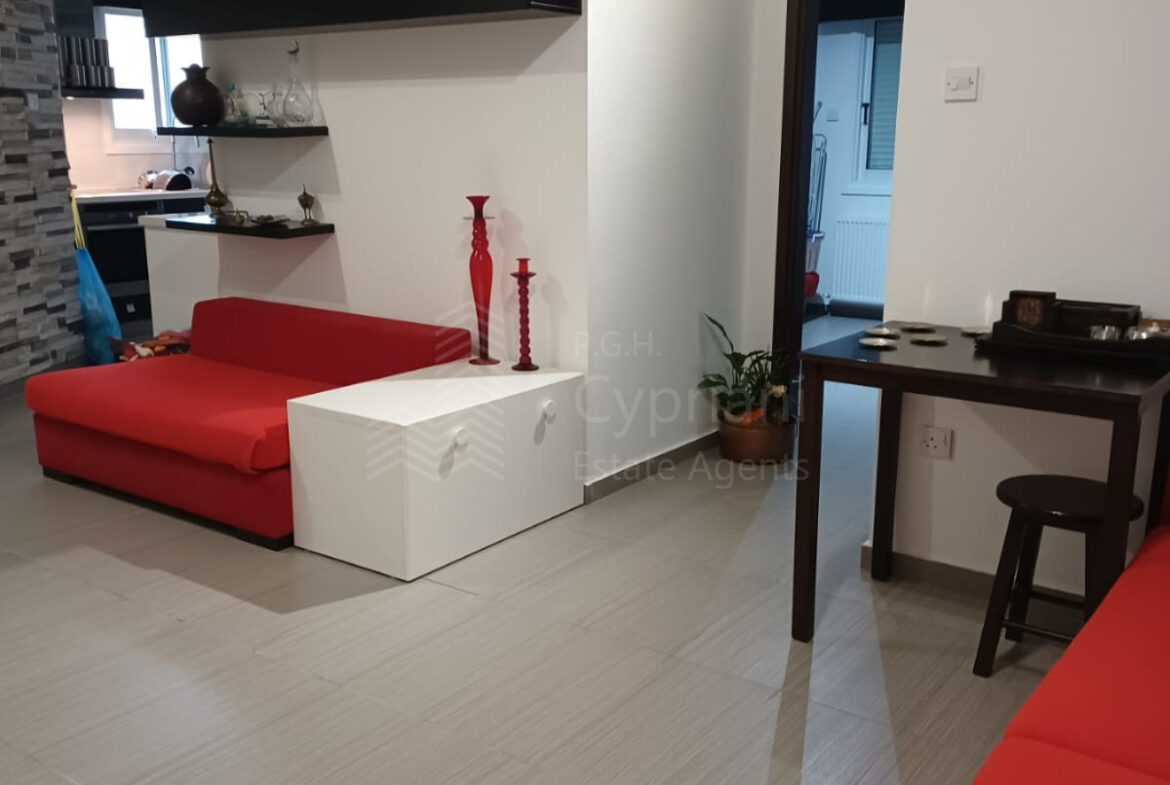 A two-bedroom apartment for sale in Lakatameia, in a cul-de-sac. The apartment has an area of 76 sqm + 14 sqm verandas and it is set on the 1st floor. It features an office, a guest wc, a bathroom, a storage room and a covered parking space. Other features of the property include appliances, air conditioning, gas central heating, a solar water heater, electric shutters and window screens. The property was constructed in 2010, it was renovated in 2022 and it has a title deed.
