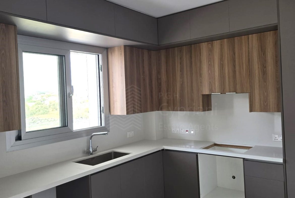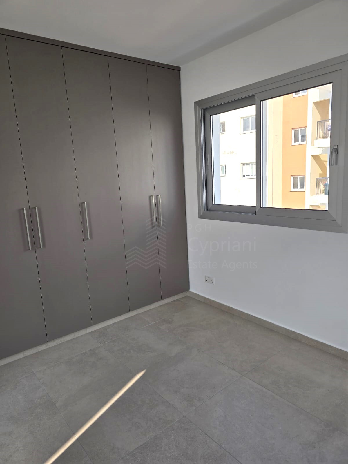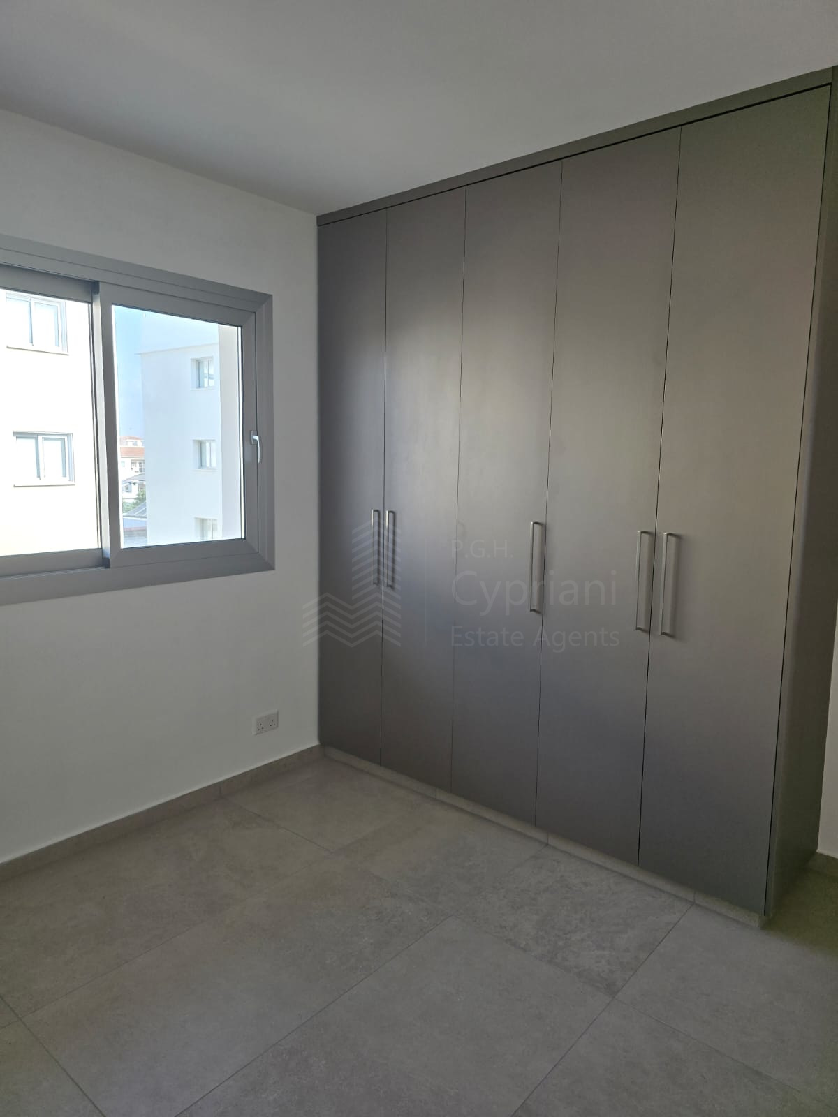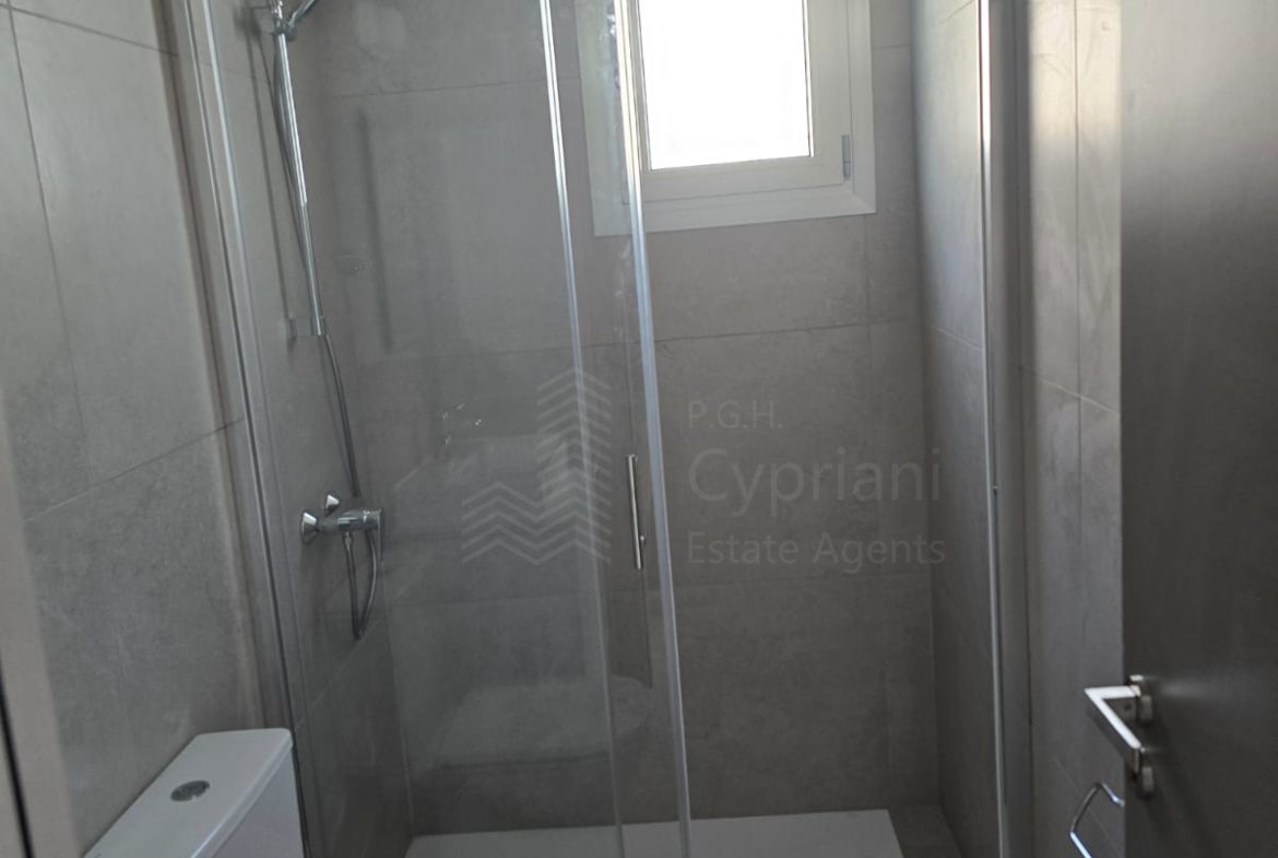 A newly built luxury apartment for sale in Latsia, set in a cul-de-sac. The apartment has an area of 101 sqm + 24 sqm verandas and it is set on the 2nd floor. It features three bedrooms, two bathrooms, a storage room and two covered parking spaces. Other features of the property include solar panels and a solar water heater.