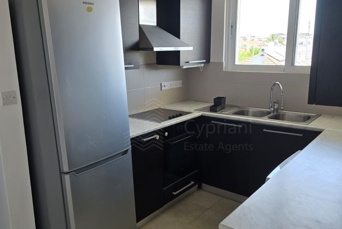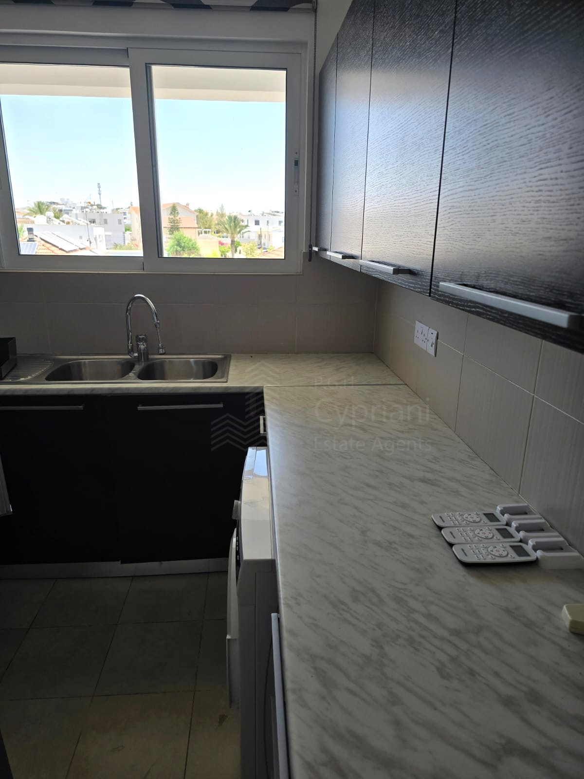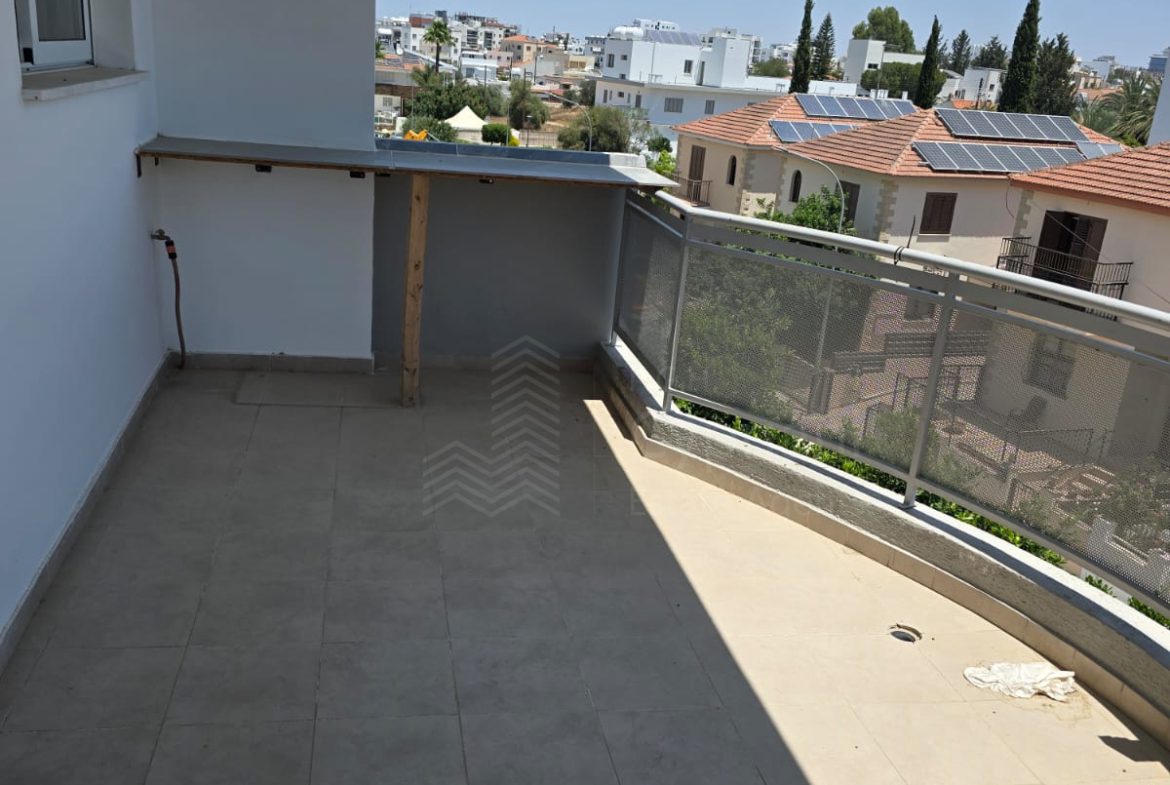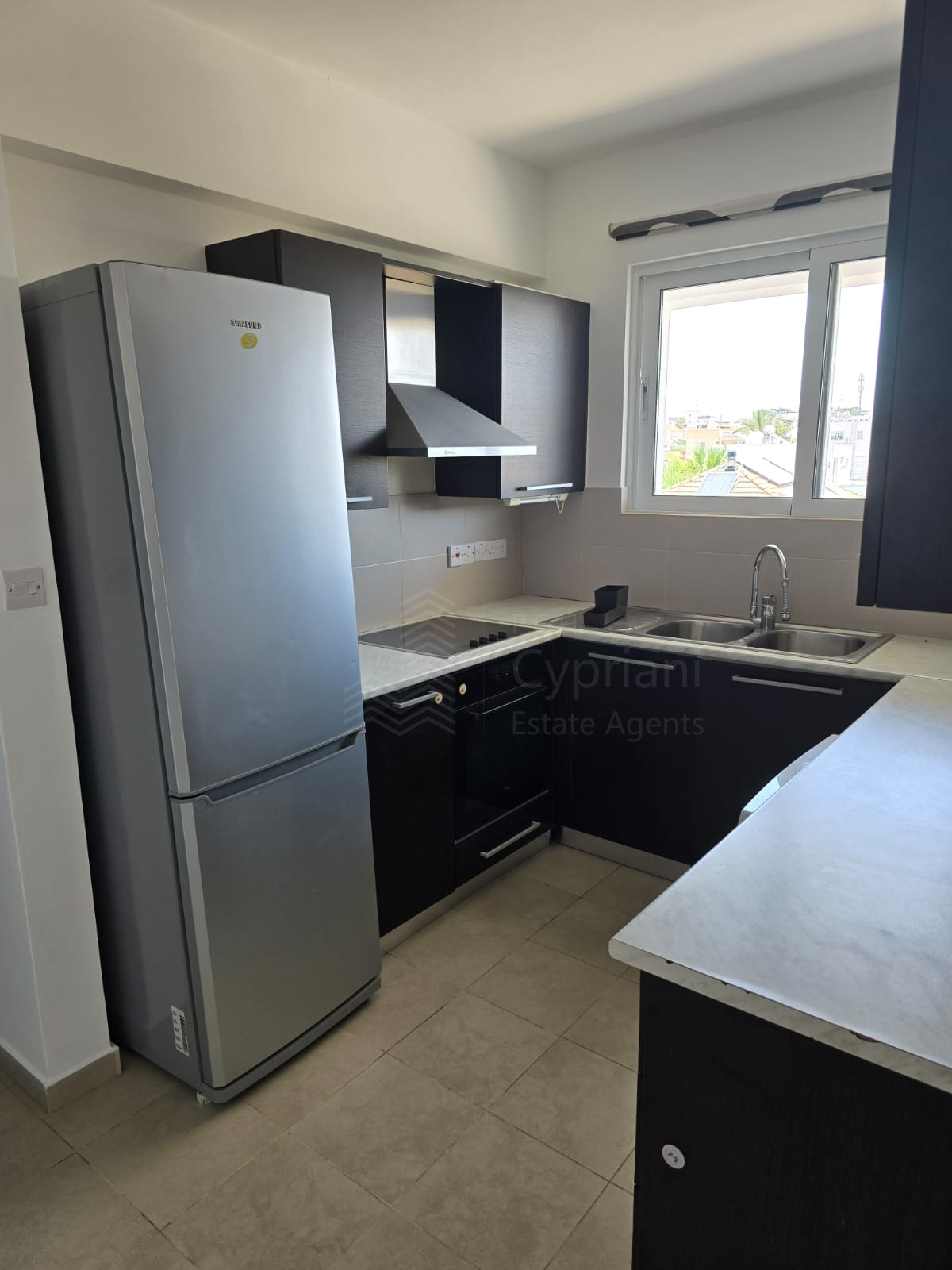 A two-bedroom penthouse apartment for rent in Latsia, set in a cul-de-sac. The apartment has an area of 78 sqm + 17 sqm verandas and it is set on the 3rd floor. It features two bathrooms, a storage room and a covered parking space. Other features of the property include appliances, inverter air conditioning units and a solar water heater. The property was constructed in 2010.