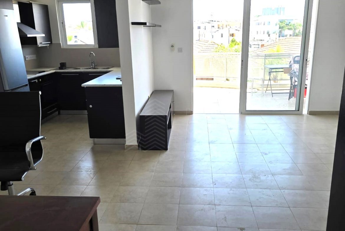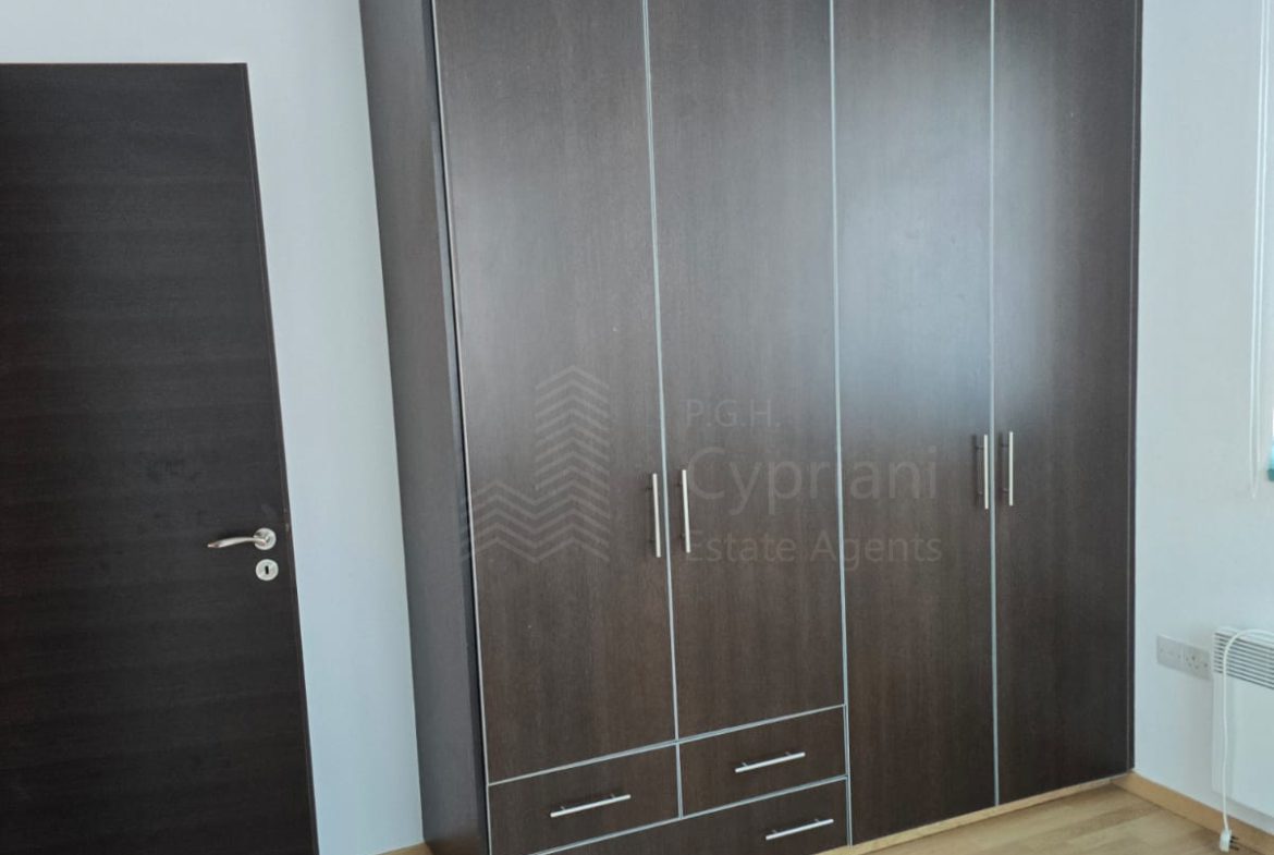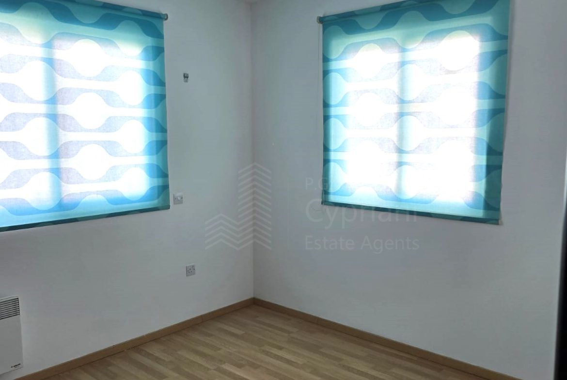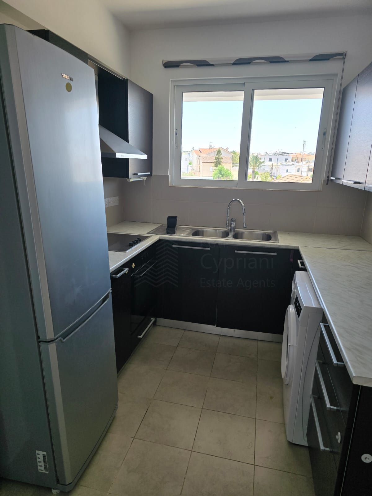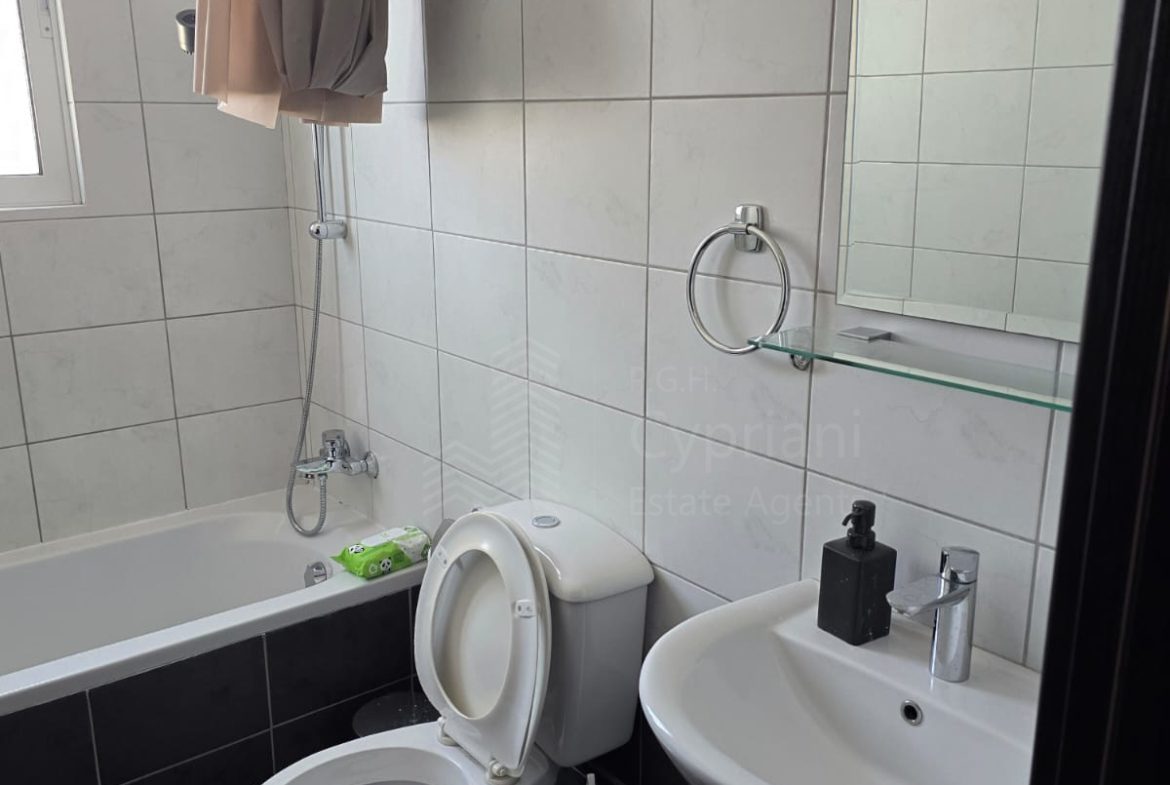A two-bedroom penthouse apartment for rent in Latsia, set in a cul-de-sac. The apartment has an area of 78 sqm + 17 sqm verandas and it is set on the 3rd floor. It features two bathrooms, a storage room and a covered parking space. Other features of the property include appliances, inverter air conditioning units and a solar water heater. The property was constructed in 2010.