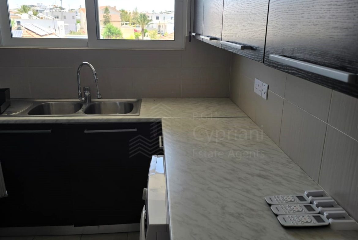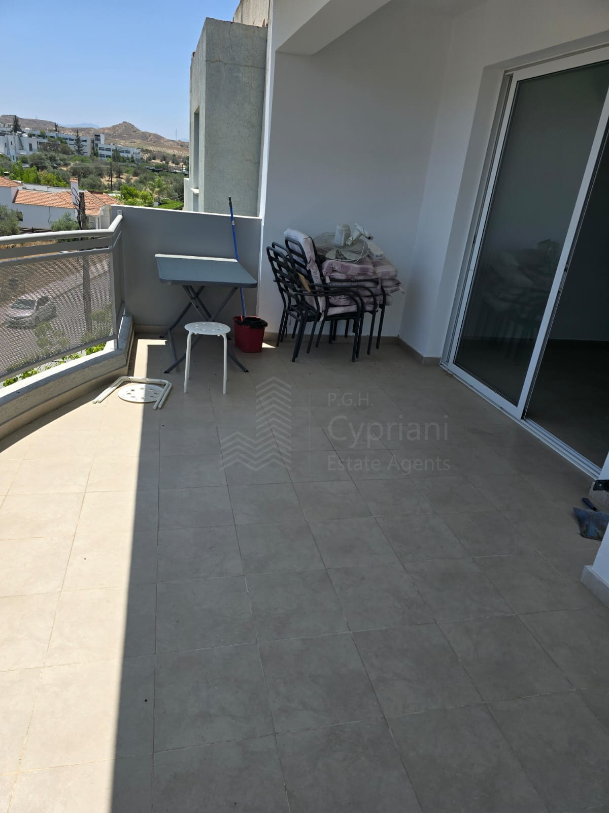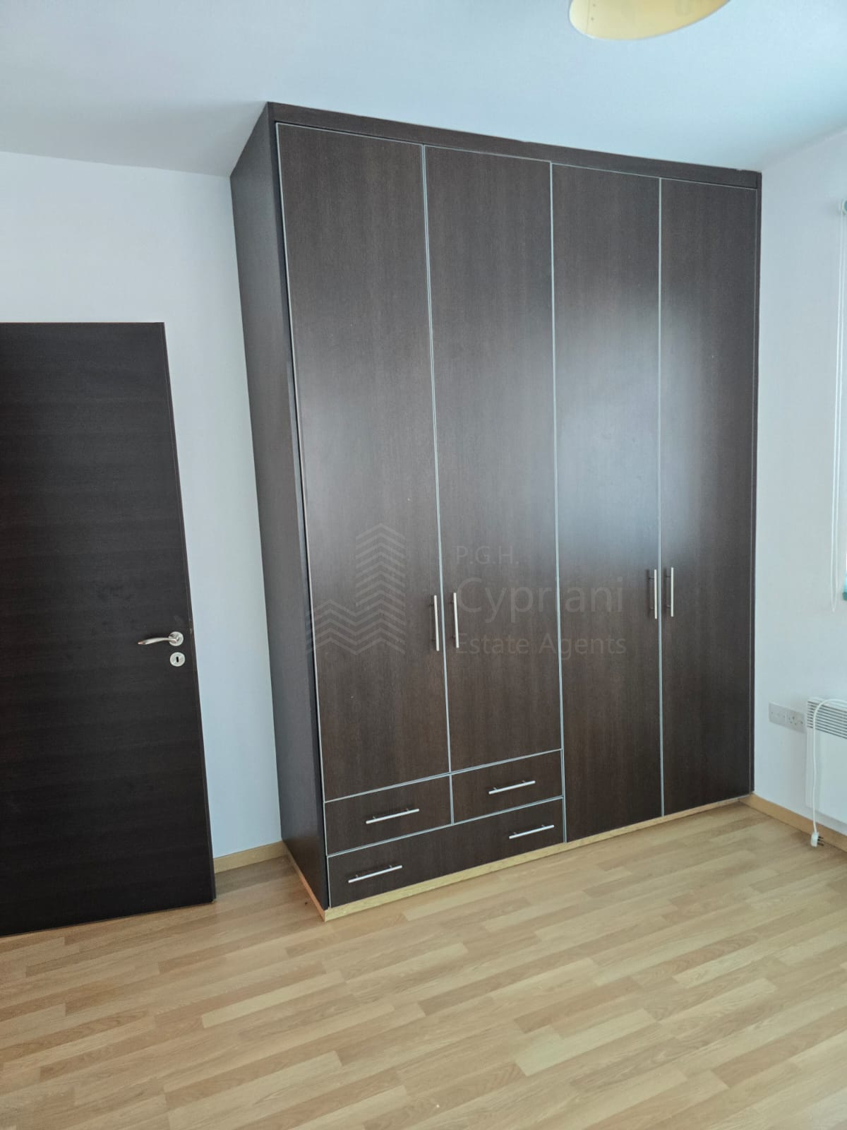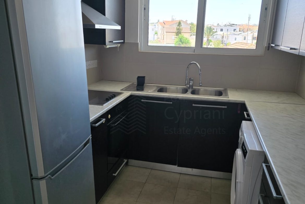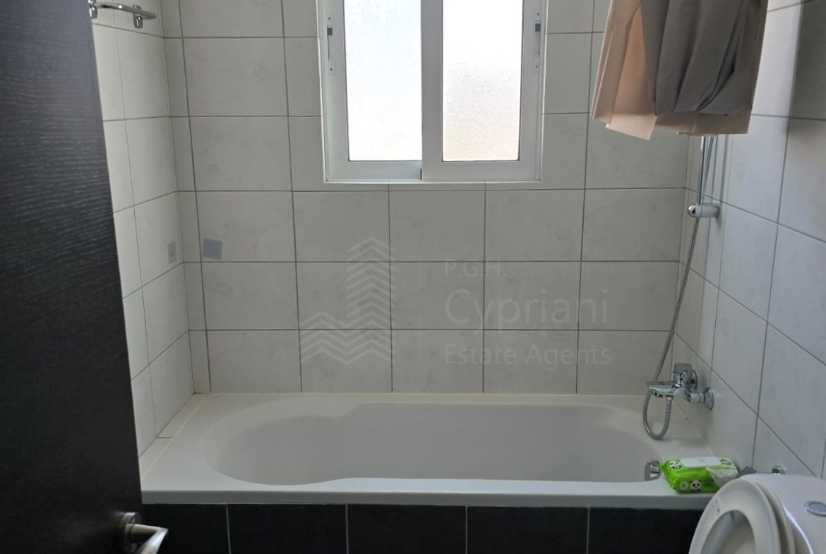 A two-bedroom penthouse apartment for rent in Latsia, set in a cul-de-sac. The apartment has an area of 78 sqm + 17 sqm verandas and it is set on the 3rd floor. It features two bathrooms, a storage room and a covered parking space. Other features of the property include appliances, inverter air conditioning units and a solar water heater. The property was constructed in 2010.