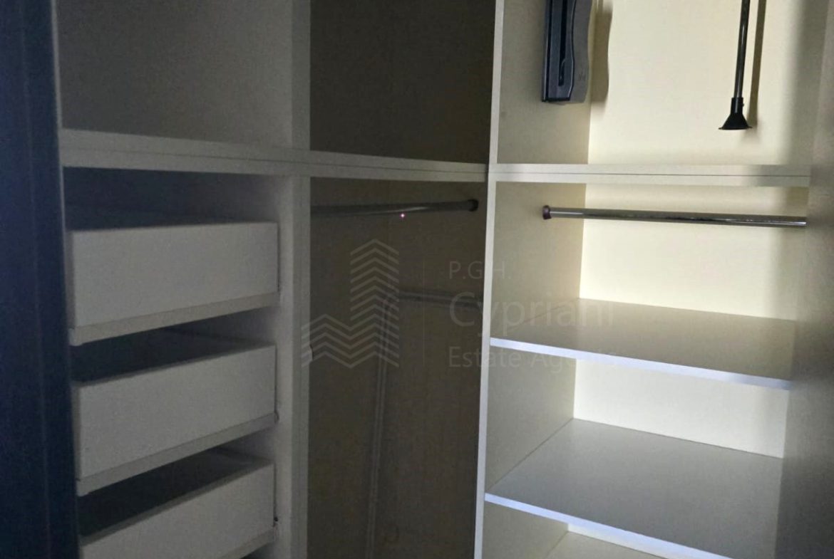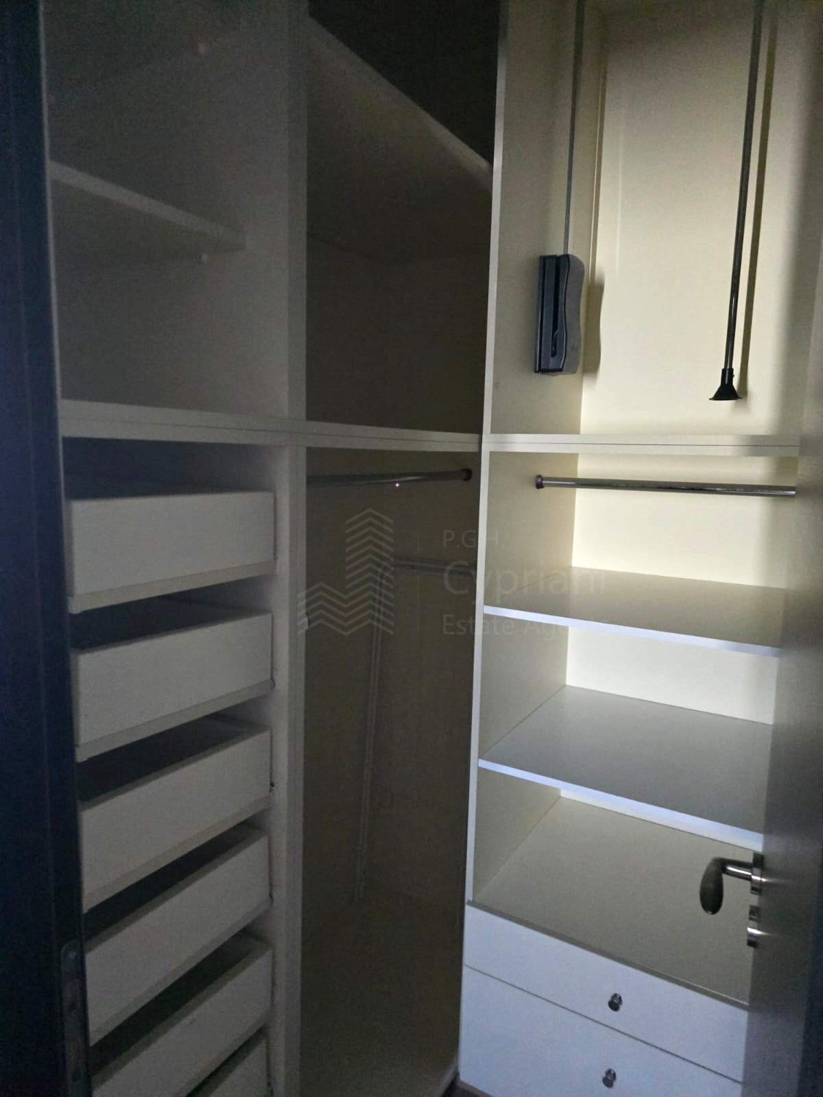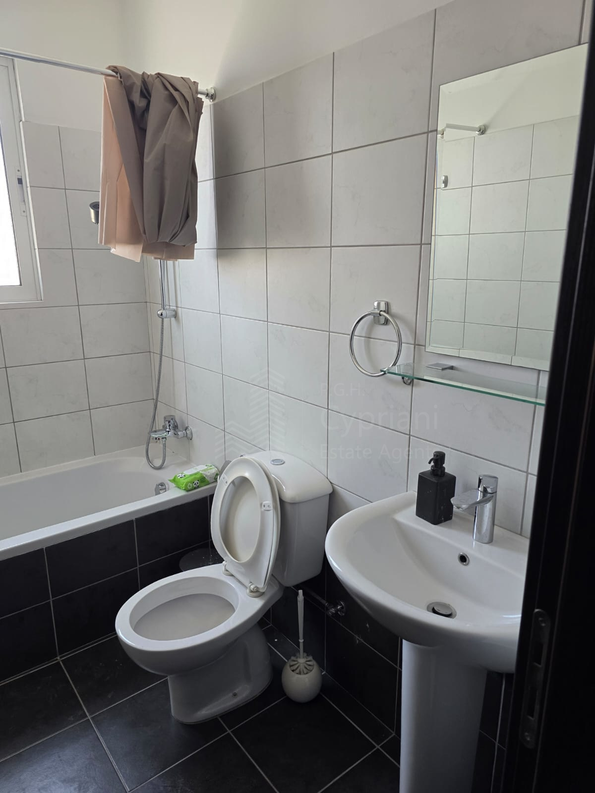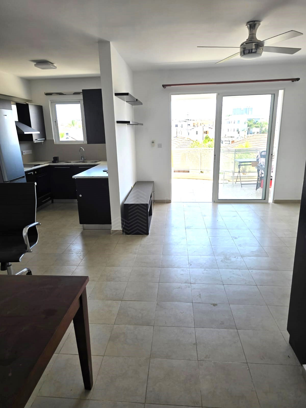 A two-bedroom penthouse apartment for rent in Latsia, set in a cul-de-sac. The apartment has an area of 78 sqm + 17 sqm verandas and it is set on the 3rd floor. It features two bathrooms, a storage room and a covered parking space. Other features of the property include appliances, inverter air conditioning units and a solar water heater. The property was constructed in 2010.