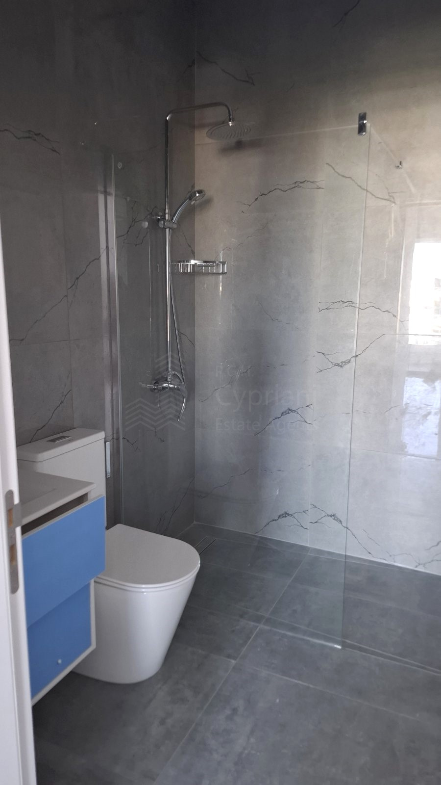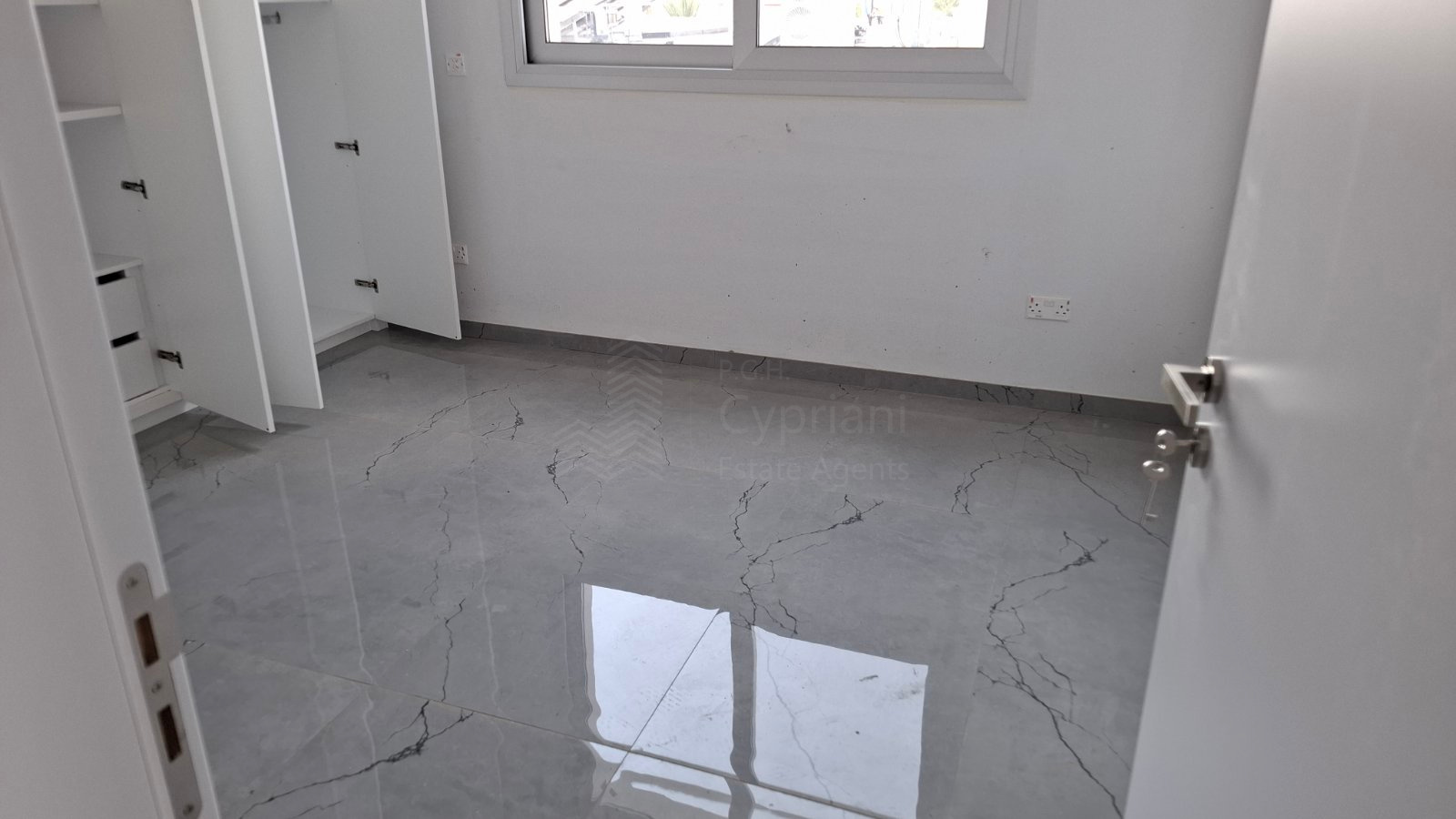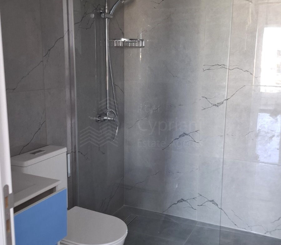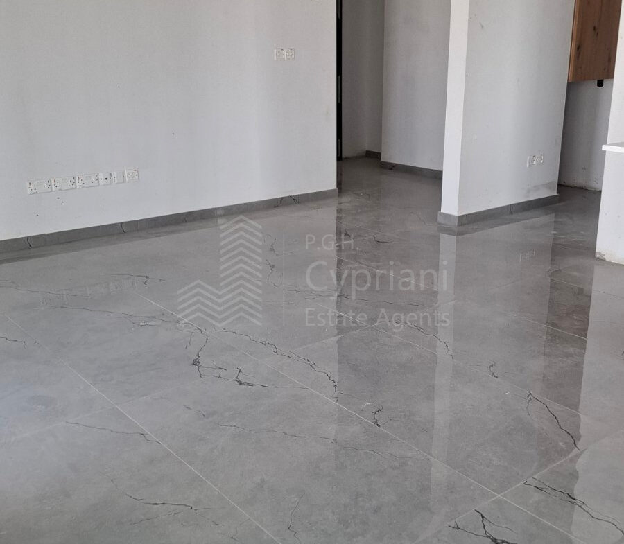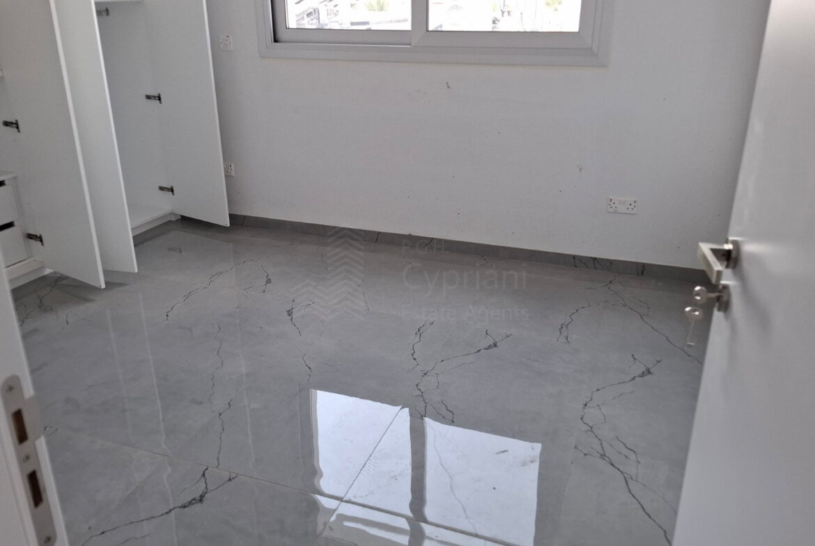 A newly built one-bedroom apartment for rent in Strovolos, in a central location. The apartment has an area of 50 sqm + 14 sqm verandas and it features appliances and a photovoltaic system. The property is located in a cul-de-sac.