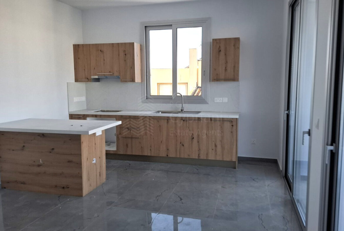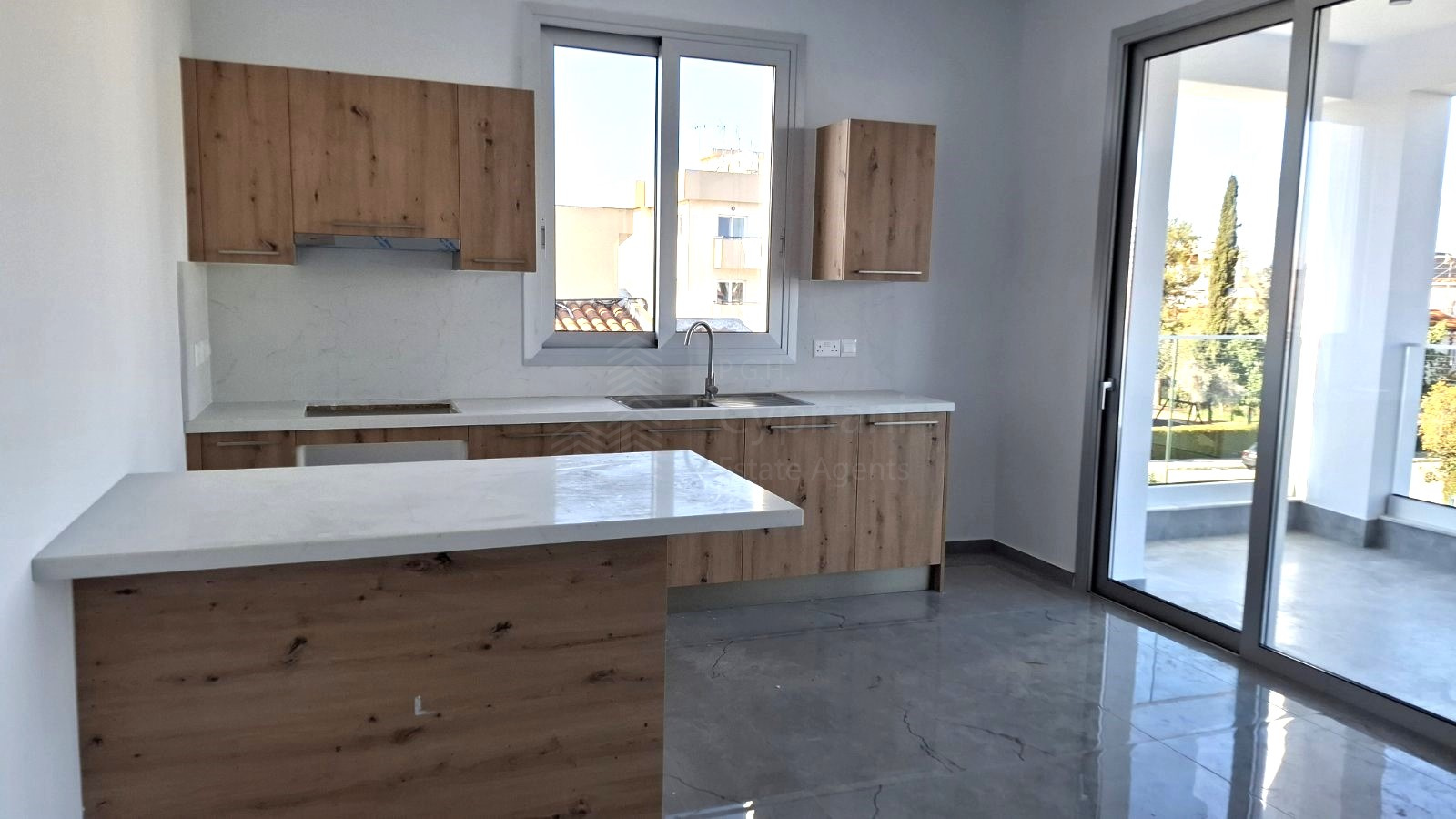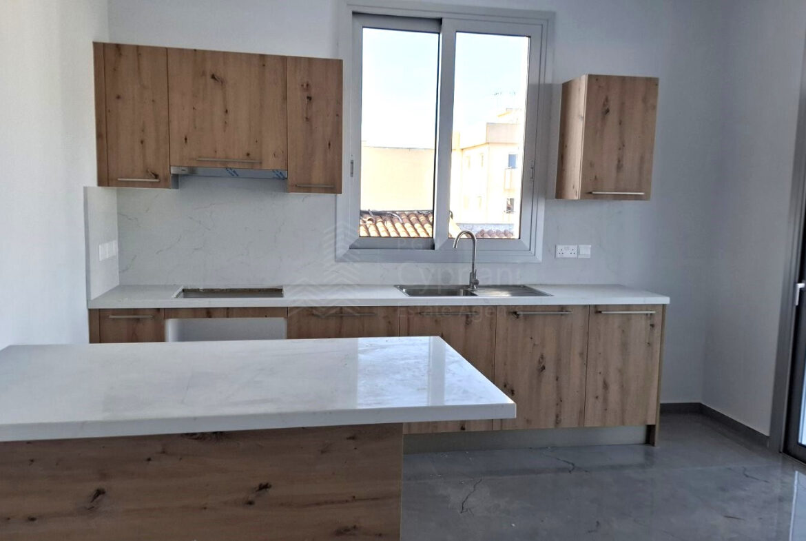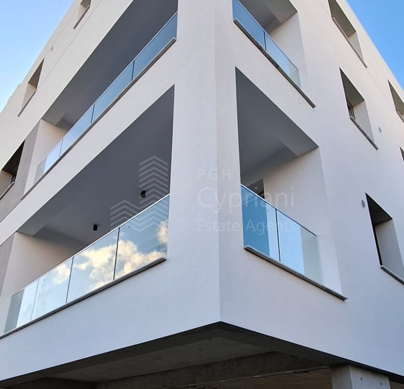 A newly built one-bedroom apartment for rent in Strovolos, in a central location. The apartment has an area of 50 sqm + 14 sqm verandas and it features appliances and a photovoltaic system. The property is located in a cul-de-sac.