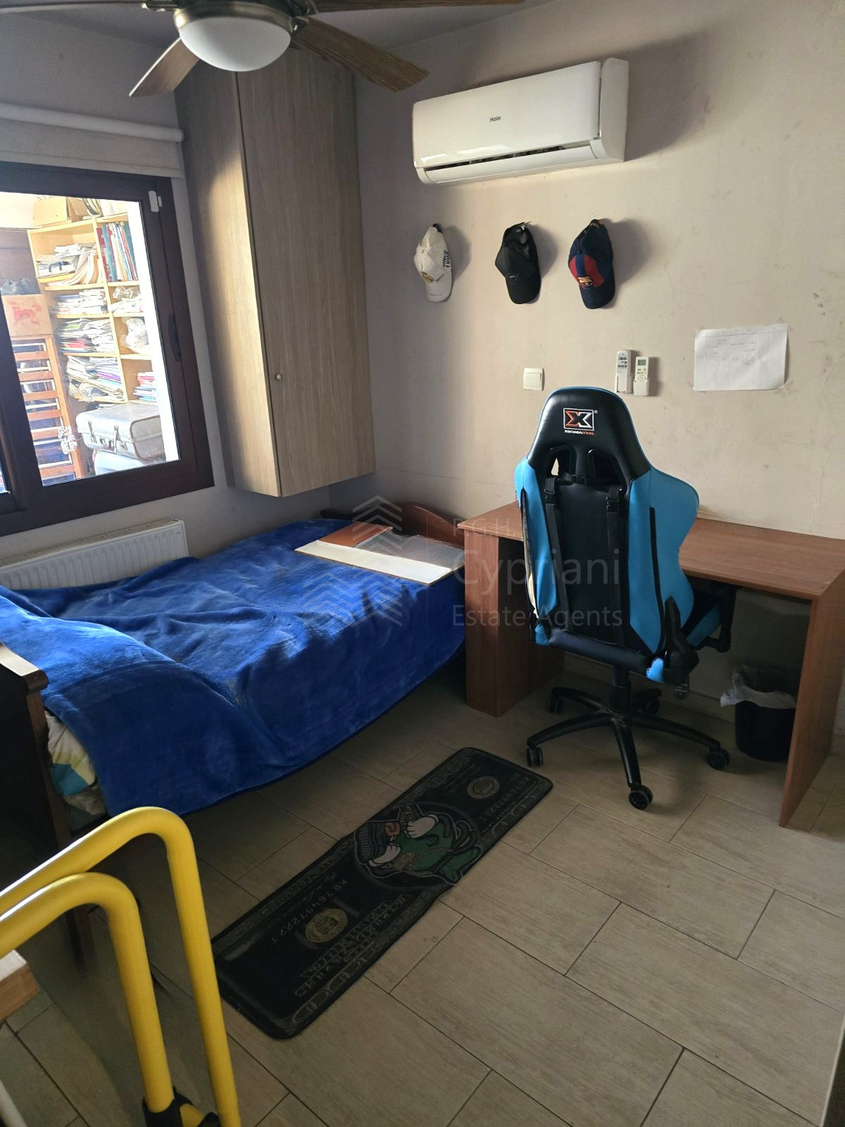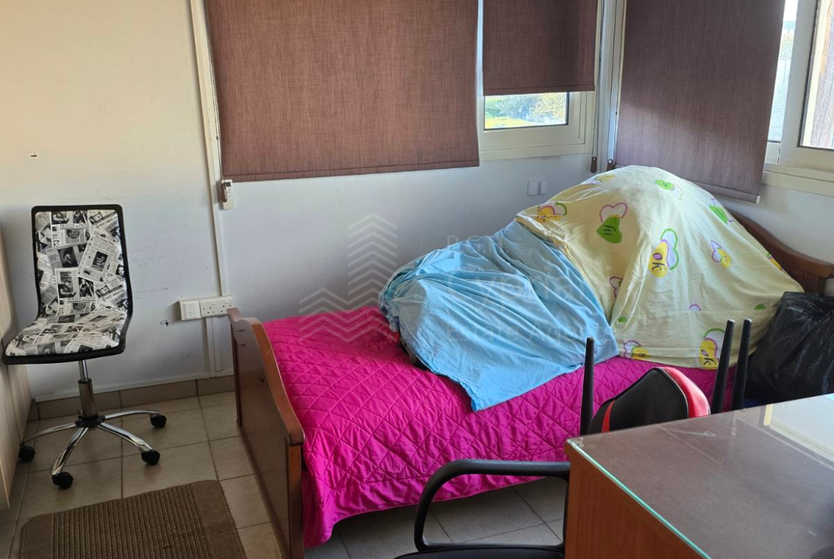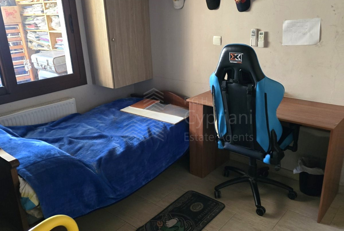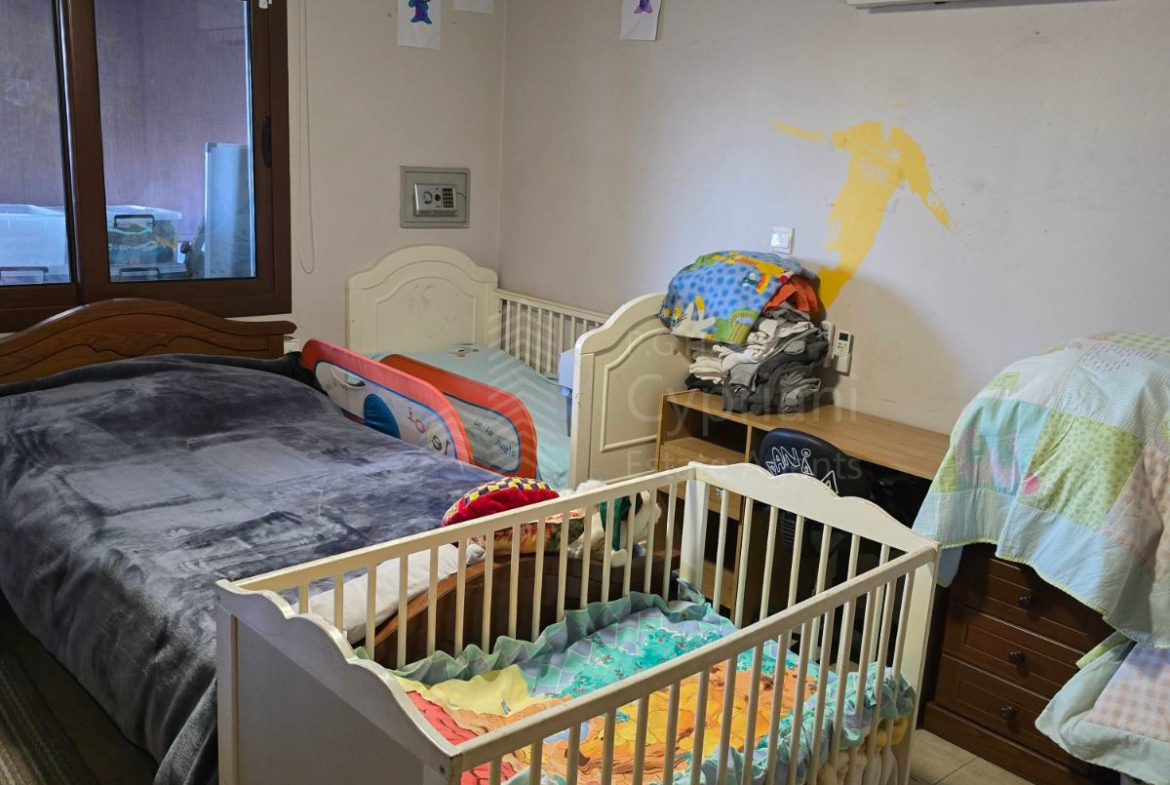 A six-bedroom house for sale in Strovolos. The house has an area of 200 sqm and it is built within a land plot of 200 sqm. It features three bathrooms and a covered parking space. Other features of the property include appliances, air conditioning, diesel heating, a solar water heater, a fireplace, solar panels and roof insulation. The property was constructed in 1985, it has been renovated and it has a title deed.
