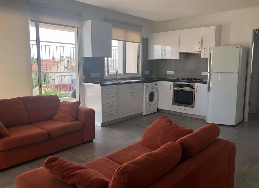 A two-bedroom penthouse apartment for rent in Strovolos. The apartment has an area of 80 sqm + 25 sqm verandas and it is set on the 3rd floor. It features a storage room and a covered parking space. Other features of the property include appliances, air conditioning and a solar water heater. The property was constructed in 2006 and it has been renovated.