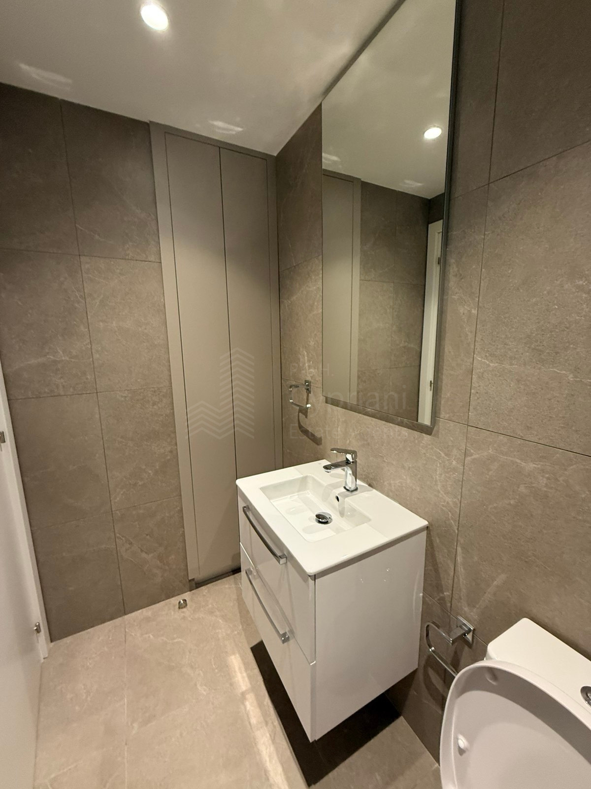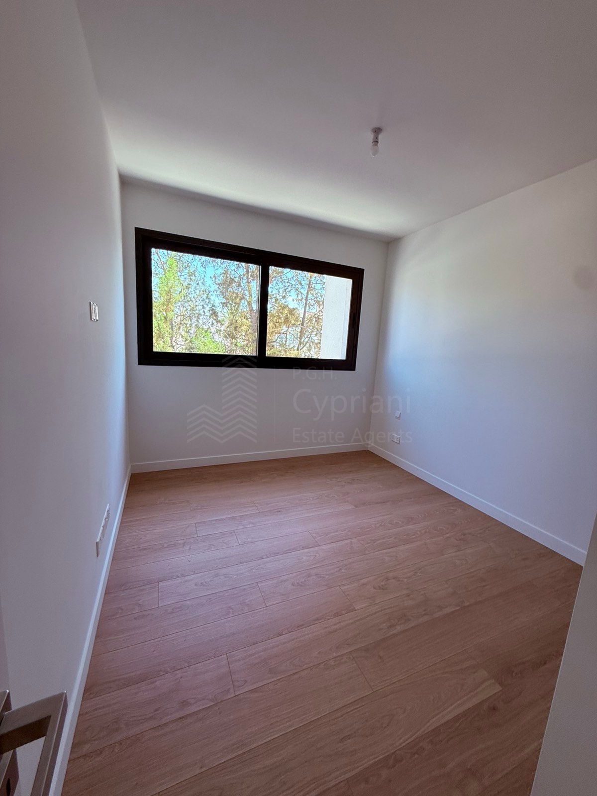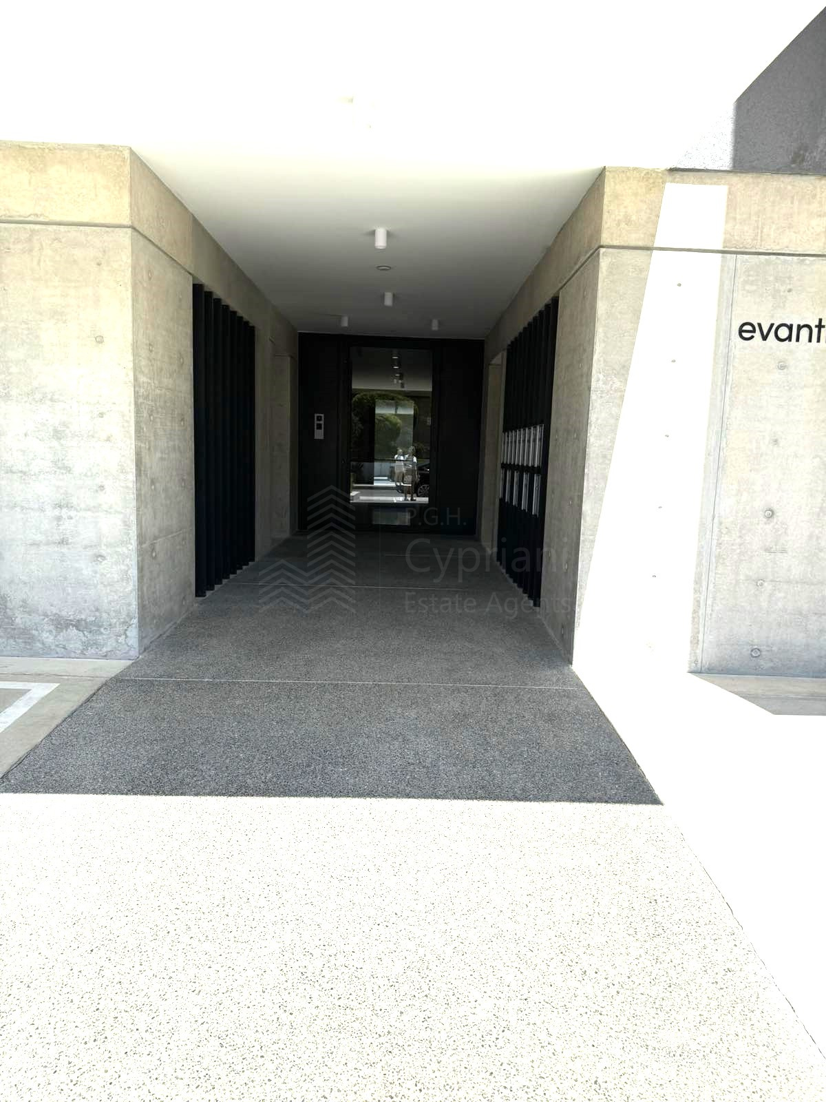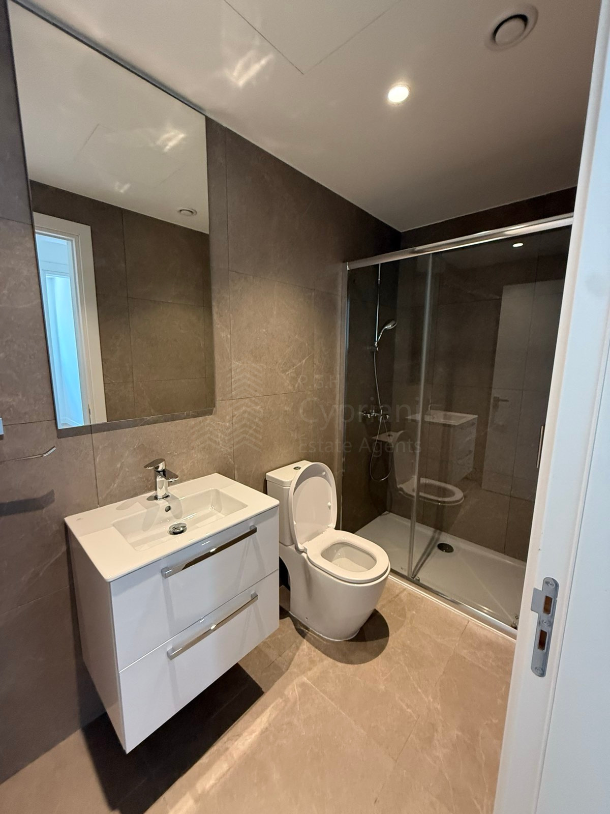 A brand new luxury two-bedroom apartment for rent in Strovolos, in a prime location near Athalassas Avenue. The apartment has an area of 86 sqm + 24 sqm covered verandas and it is set on the 1st floor. It features two bathrooms, a storage room and a covered parking space. Other features of the property include high-quality finishes, appliances, air conditioning, underfloor heating, solar panels and a solar water heater. The apartment is set in a modern luxury building that features an extra communal patio.