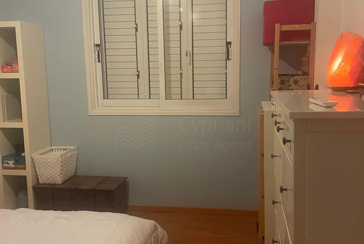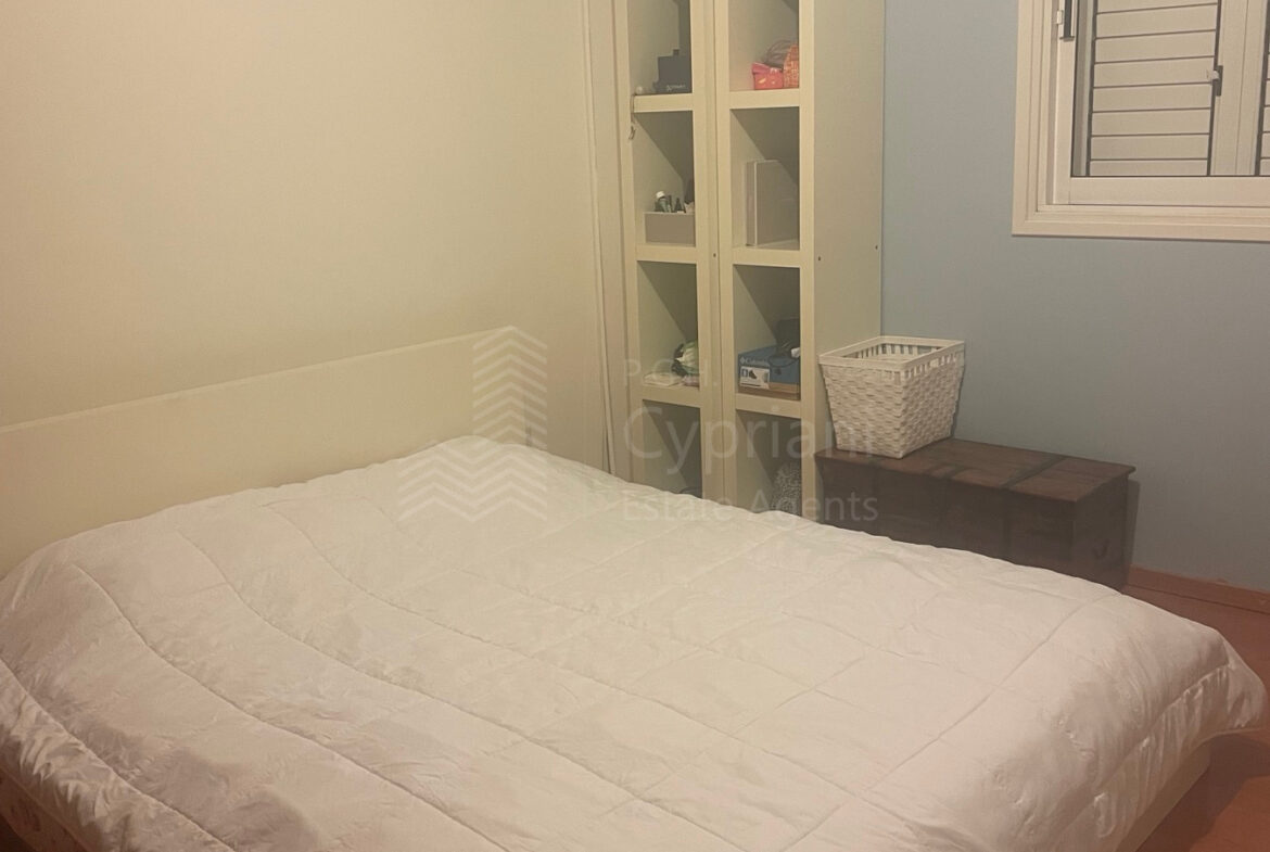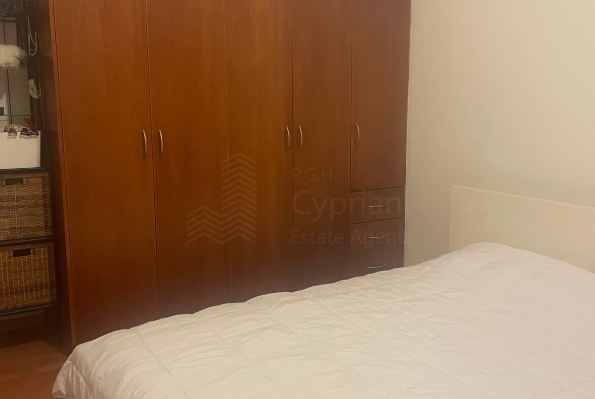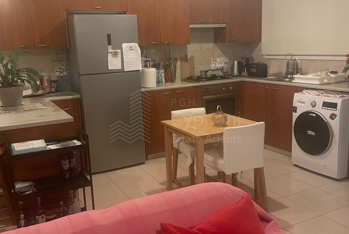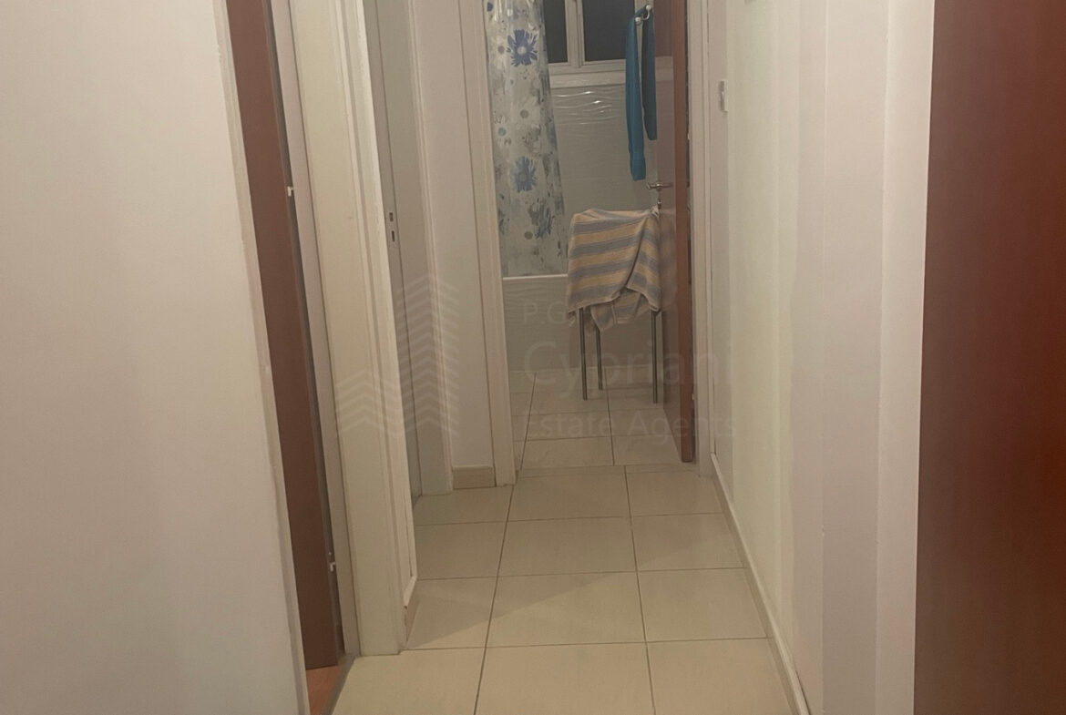 A two-bedroom apartment for sale in Strovolos. The apartment has an area of 80 sqm + 8 sqm verandas and it is set on the 2nd floor. It features a covered parking space, appliances, air conditioning, and a solar water heater. The apartment was constructed in 2004, it has a title deed and it is situated in a building with 10 apartments in total.