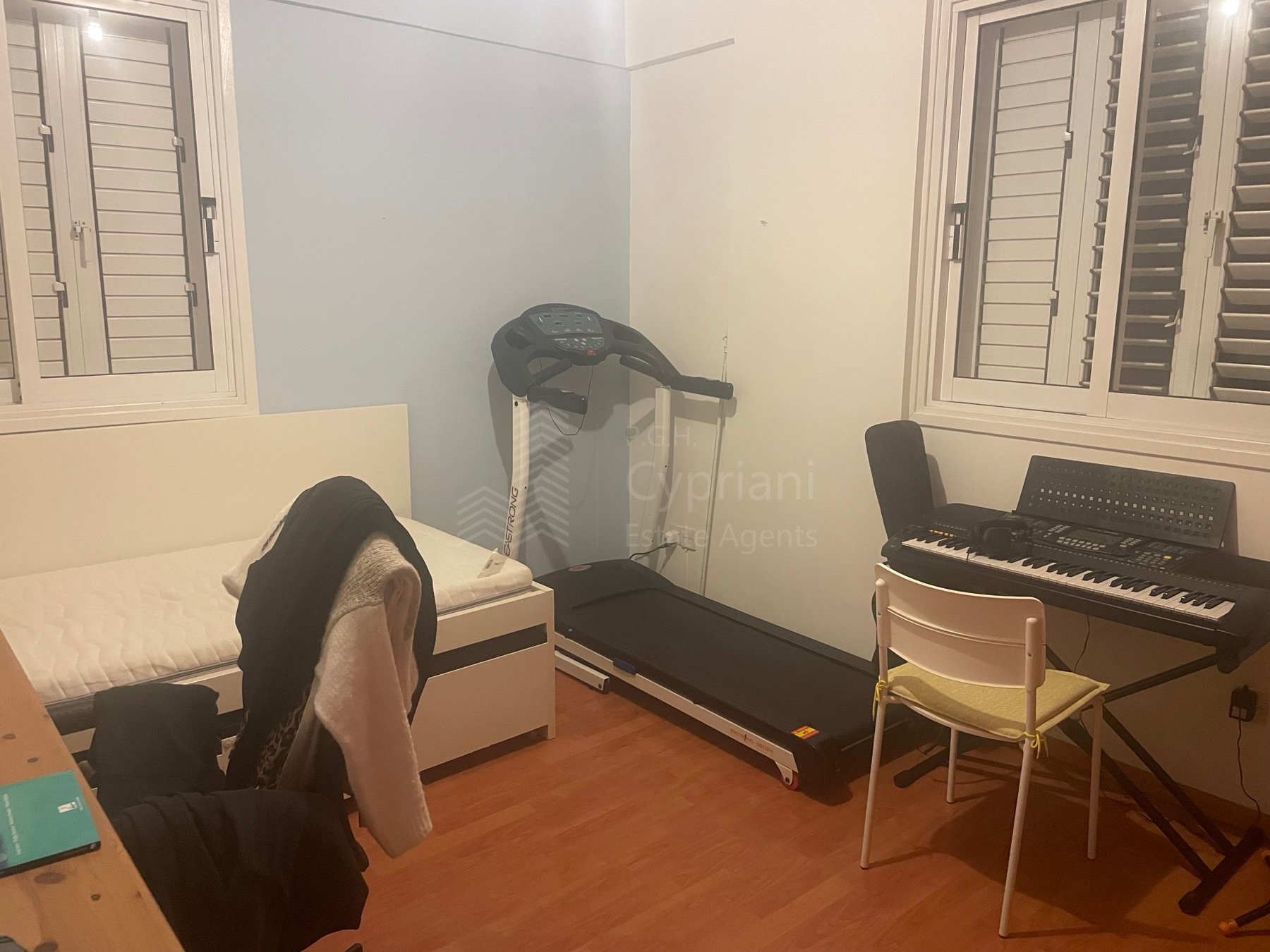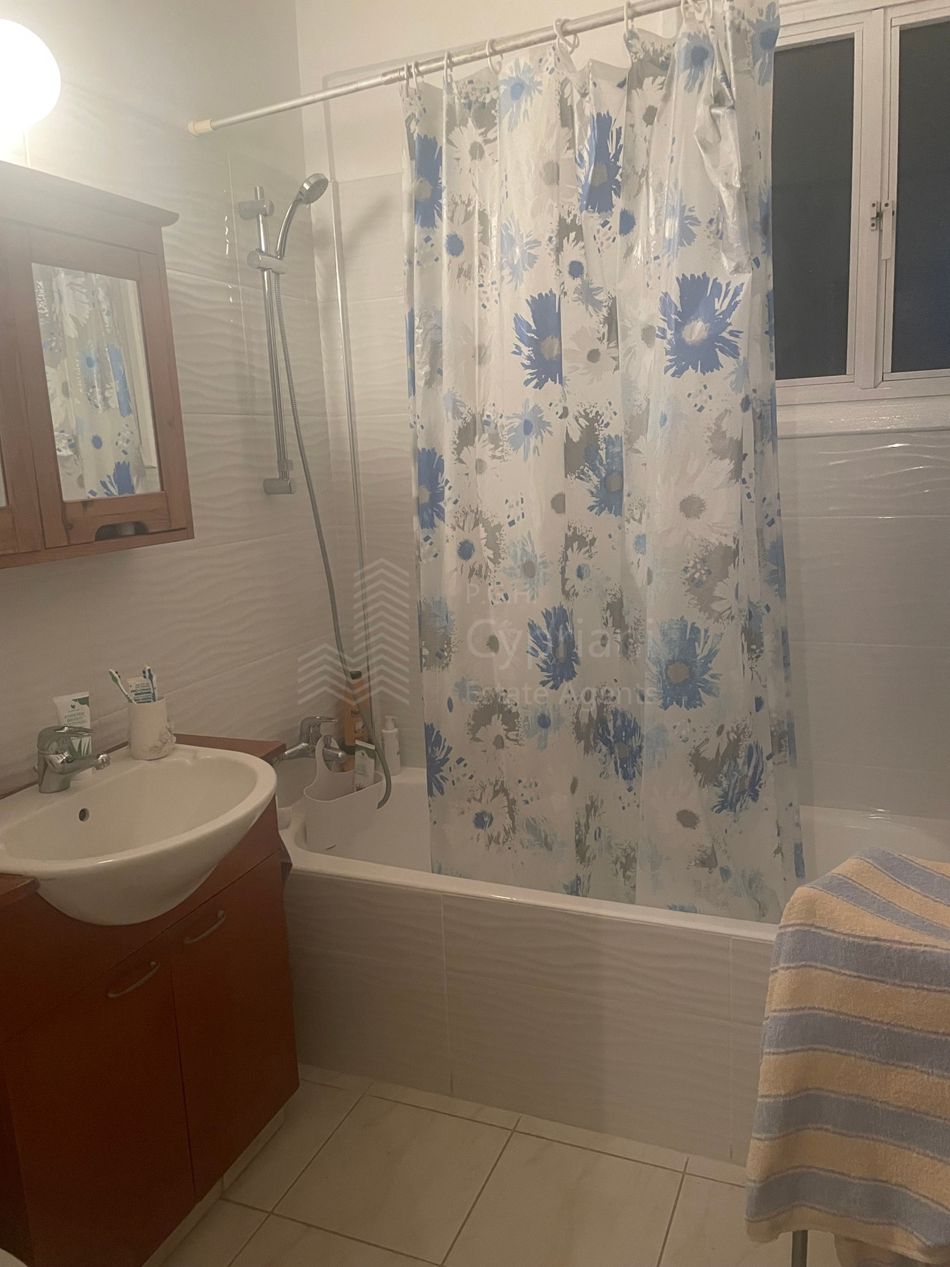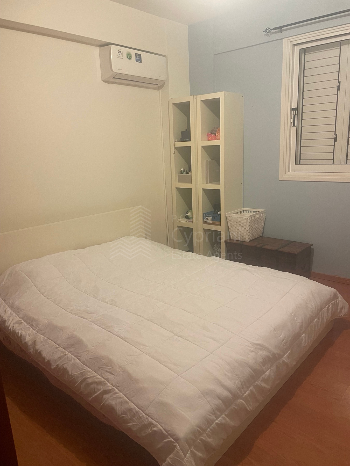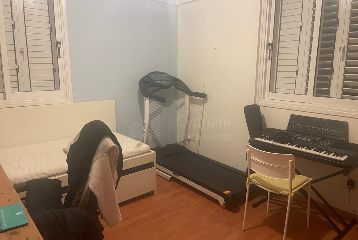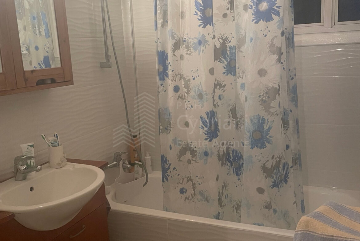 A two-bedroom apartment for sale in Strovolos. The apartment has an area of 80 sqm + 8 sqm verandas and it is set on the 2nd floor. It features a covered parking space, appliances, air conditioning, and a solar water heater. The apartment was constructed in 2004, it has a title deed and it is situated in a building with 10 apartments in total.